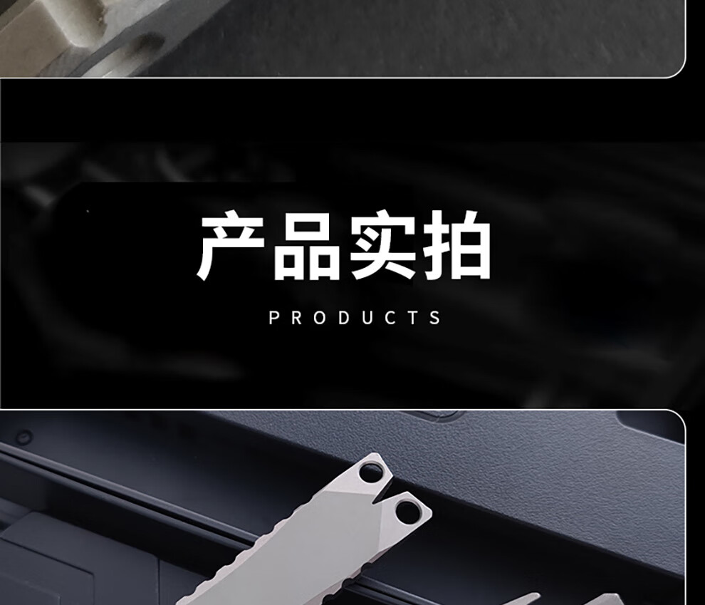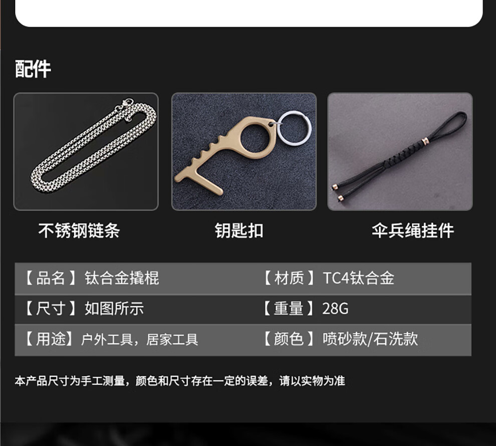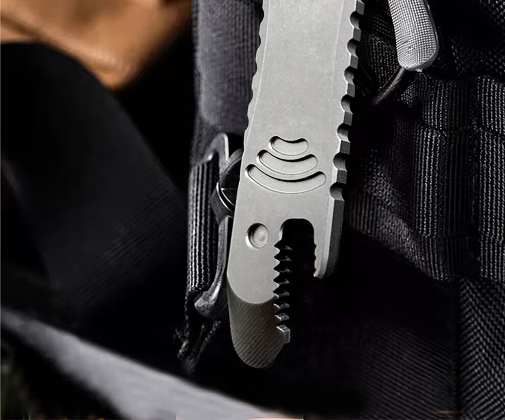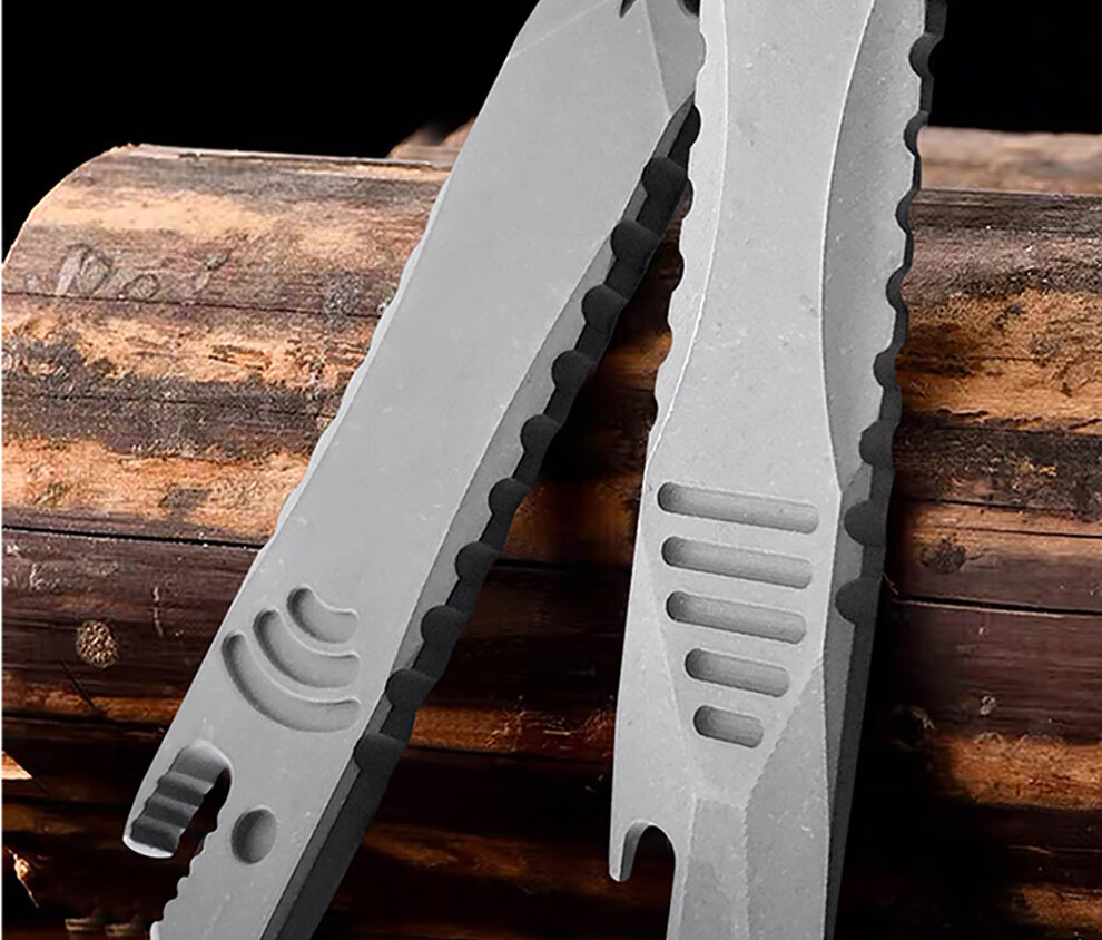 酷撼鲨鱼撬棍钛合金高硬度撬棒起钉开瓶器拆箱开盖多功能户外防身工具 石洗半齿款(挂绳+挂链+钥匙扣)
