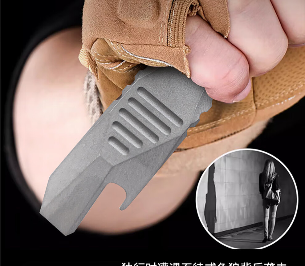 酷撼指虎钛合金防身多功能开瓶器开罐撬棍六角扳手EDC户外野营工具 钛合金闪电纹(大)