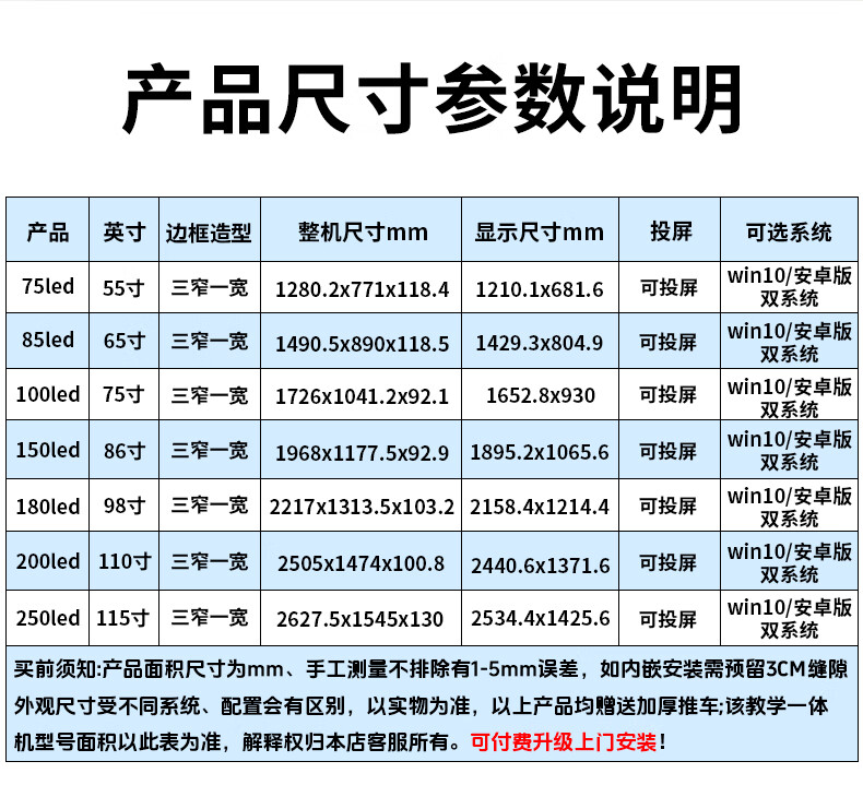 85够大,挺智能的,上课跟开会都很方便,后排孩子也看得清