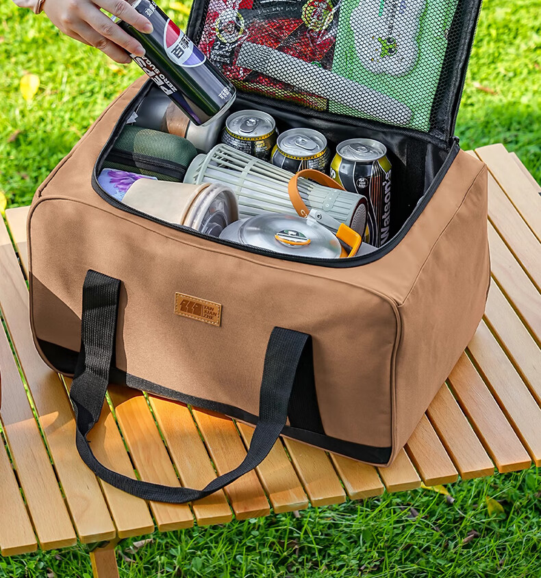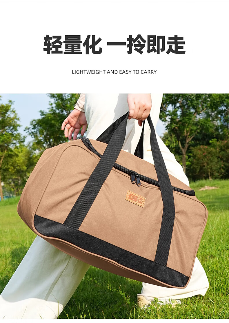 这款户外收纳包真的太能装了!上次跟朋友去露营,我就带了一个,帐篷配件、折叠椅、零食水果塞进去,居然还有空余地方。面料是那种耐磨的帆布,下雨溅了点水也没事,擦一擦就干,不用担心里面东西受潮。 最贴心的是分层设计,小口袋能装钥匙、充电宝这些零碎物件,大隔层放外套、睡袋正好,找东西不用翻来翻去。背带还能调节,我这种小个子背着不勒肩,男生背也不显得局促。 上次爬山,朋友的包拉链半路坏了,东西撒了一地,我这个拉链顺滑得很,拉合一点不费劲。现在不管是短途徒步还是周末野餐,我都带着它,轻便又结实,真的离不开了。