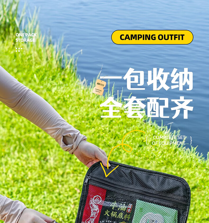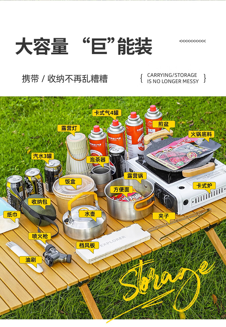 探险者户外收纳包露营野炊公园野餐锅具家用大容量收纳包 锅具收纳包+不锈钢锅具套装
