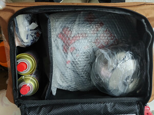 收纳包的质量非常不错,用料非常足,也很结实,耐脏,关键是非常能装,气罐、厨具、餐具,一个包全部装下,拿着非常方便,非常实用。