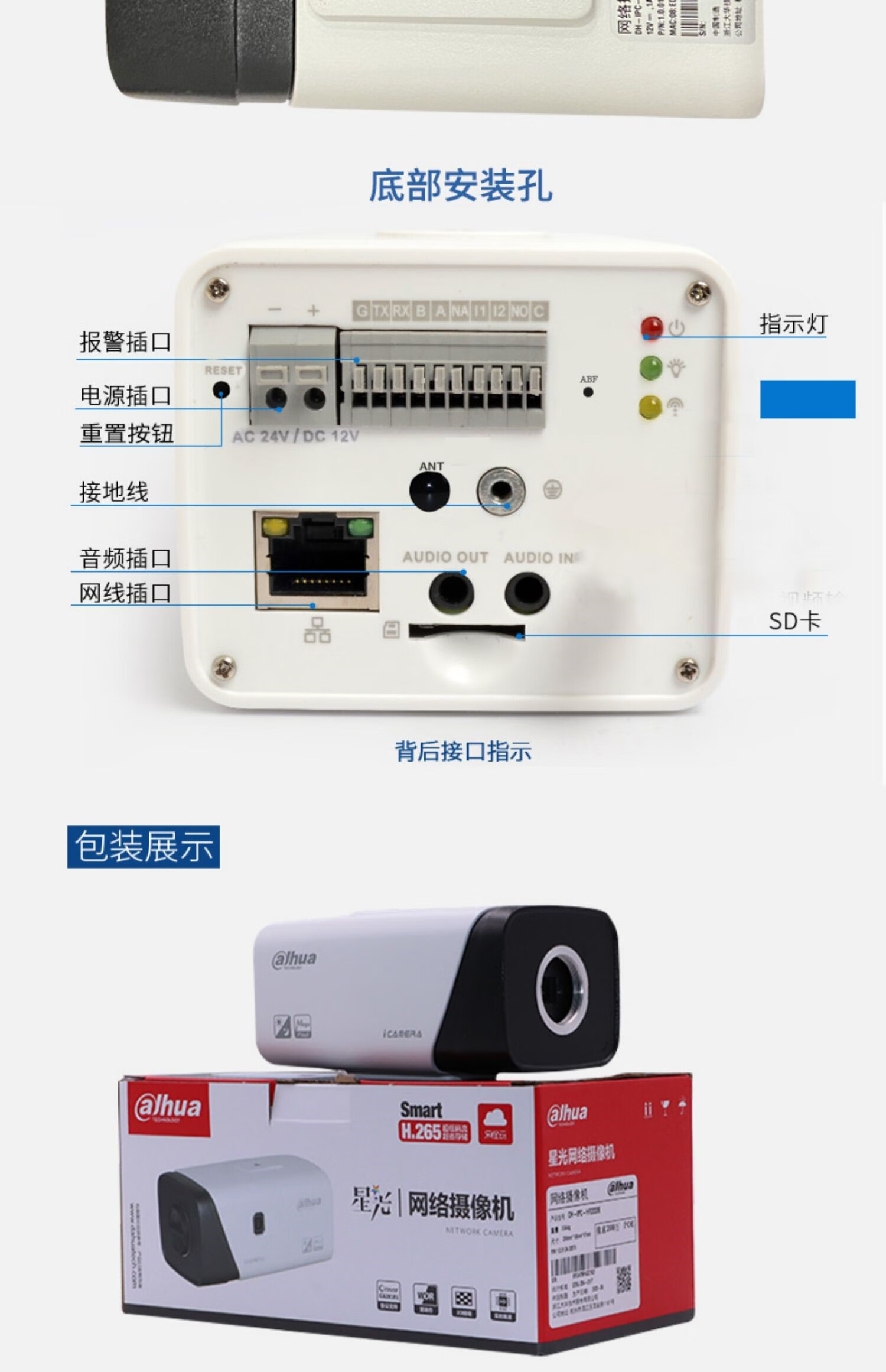大华原装200万高清H.265网络POE摄像机DH-IPC-HF2233E外接镜头枪3433 DH-IPC-HF3433E400万无镜头