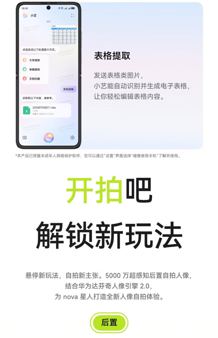 华为【分期免息】nova Flip 小折叠 轻薄可靠鸿蒙AI趣玩全网通5G双卡 nova flip 向新绿 12GB+256GB 官方标配 原封未激活 全国联保