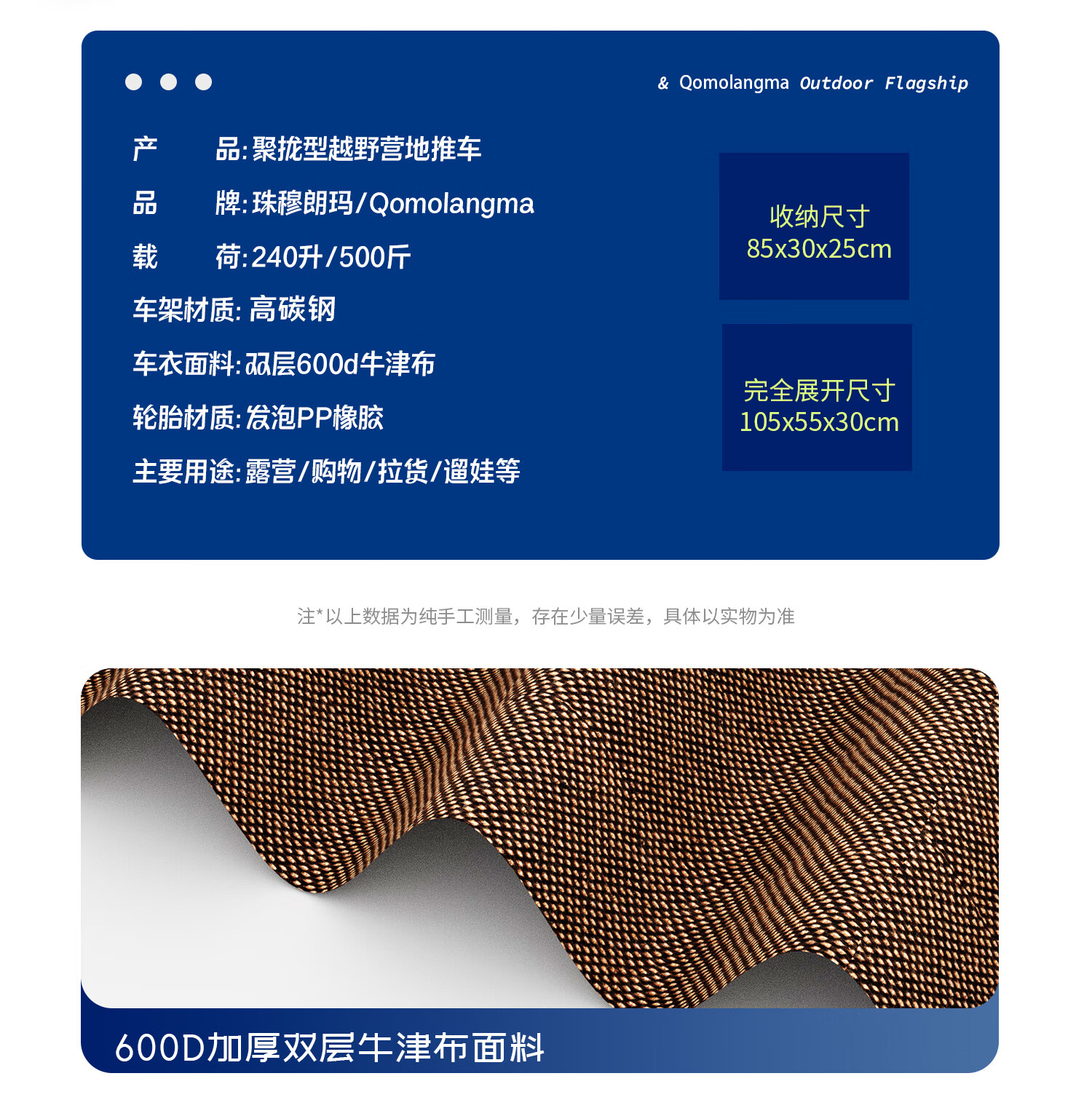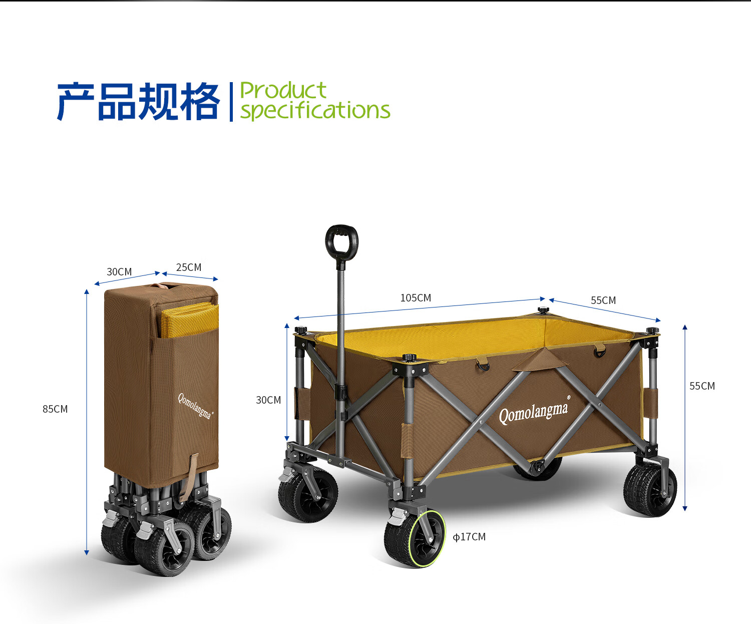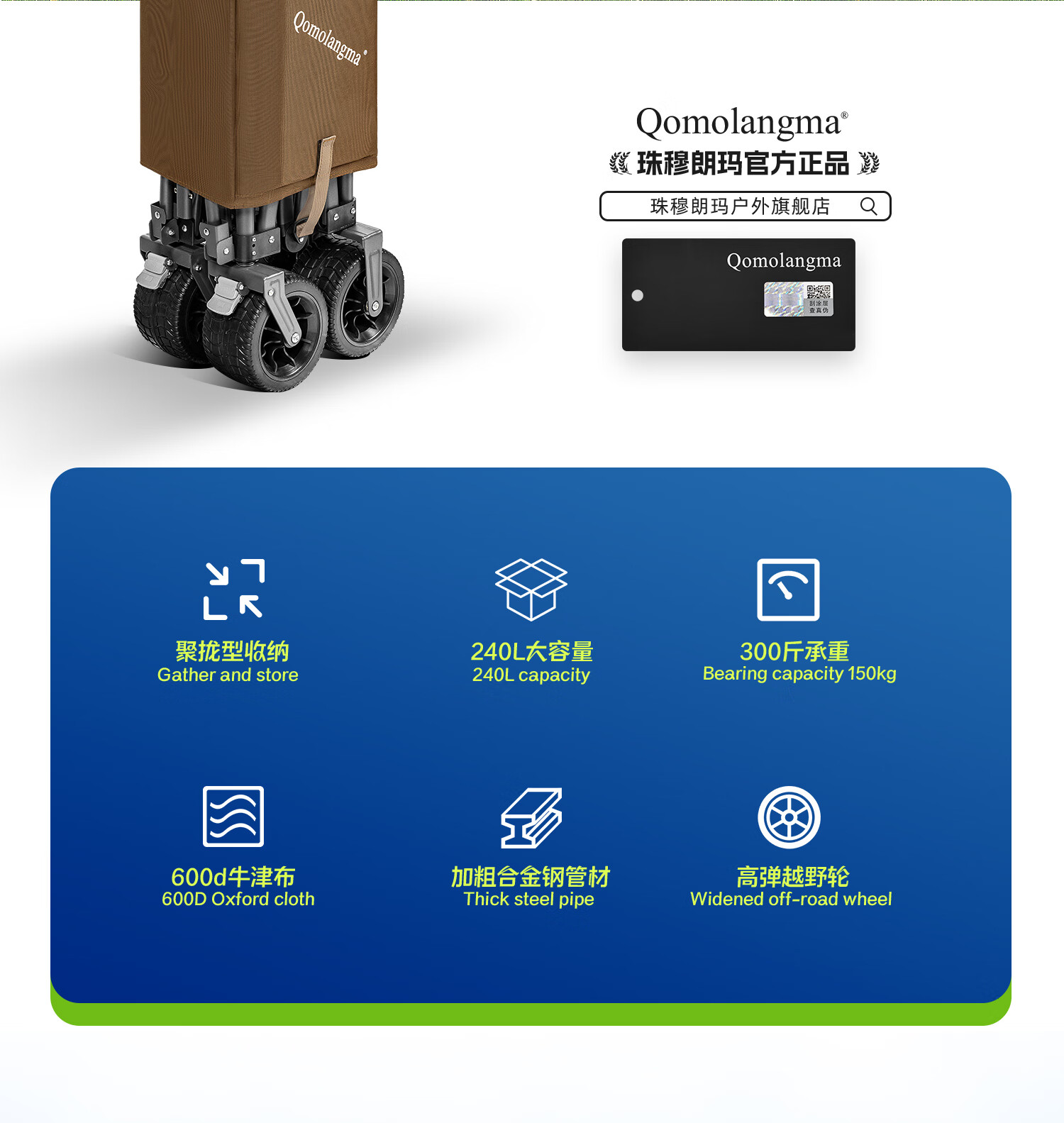 QOMOLANGMAqomolangma营地车露营车户外折叠推车拖车野营车钓鱼拉车 挪峰&珠穆朗玛联名160L越 有刹车