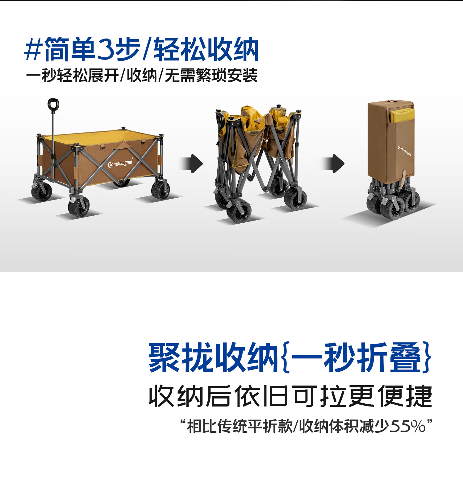 QOMOLANGMA珠穆朗玛营地车露营车户外折叠手推车野营郊游烧烤野餐 Qomolangma_QA5K咖色轻型露营车