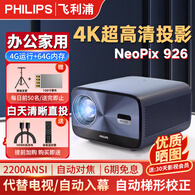 飞利浦(PHILIPS)4K超高清云台投影仪电视一体机家庭影院 办公会议手机电脑投屏商用大屏客厅卧室家用投影机 NeoPix 926投影仪