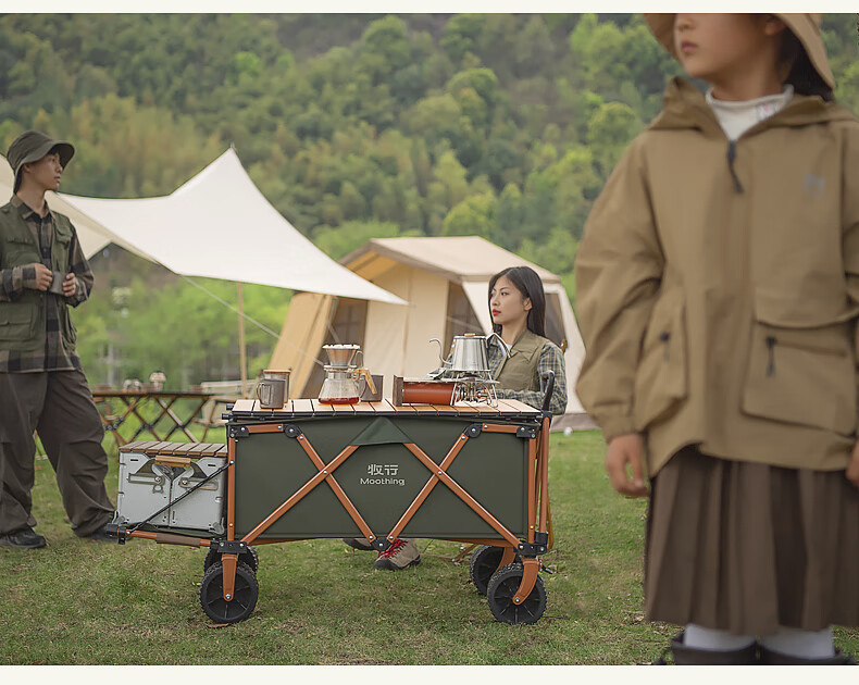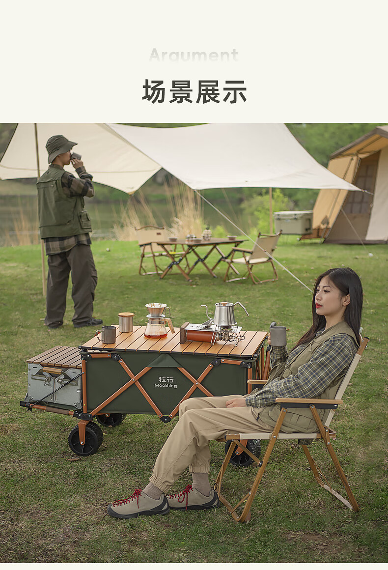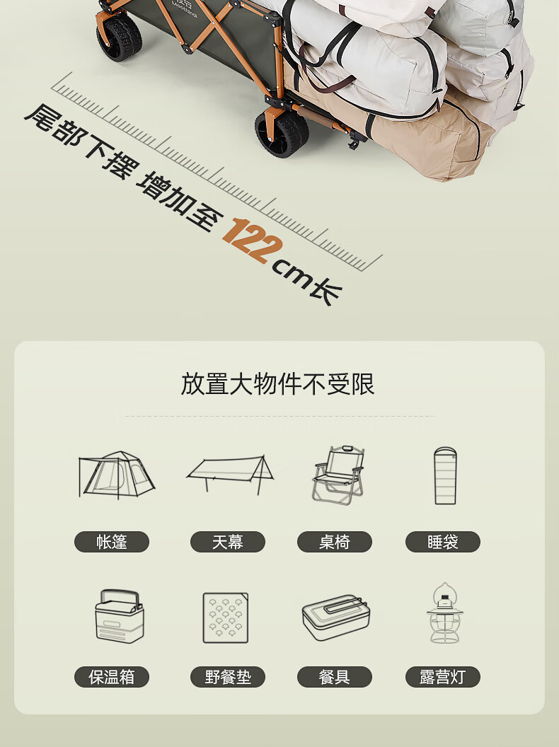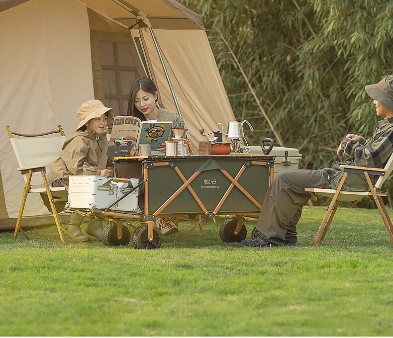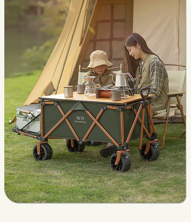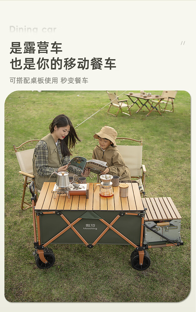 牧行露营车带桌板户外聚拢型折叠手推车儿童可躺野餐拉车S12 610L 绿色MAX+1.2米加长桌板