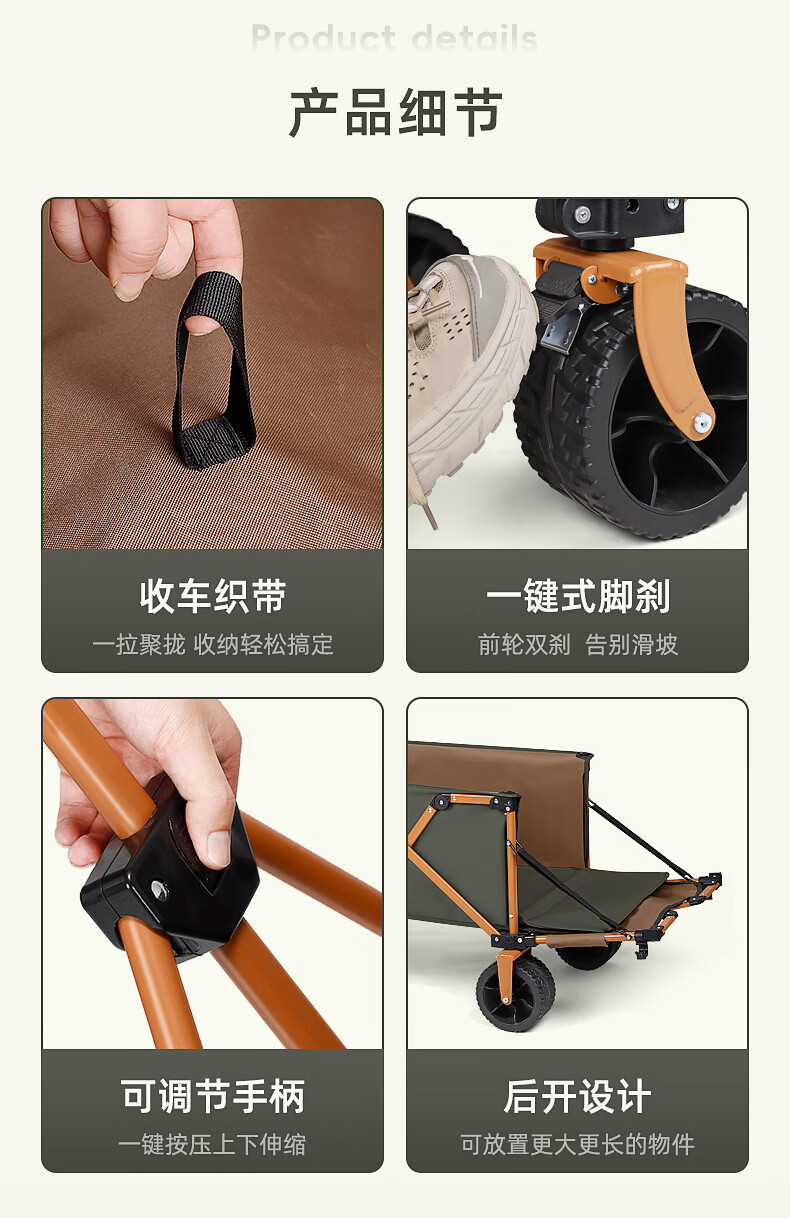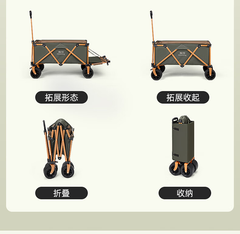 牧行这款露营推车容量大 ,可以快速收拢,占体积小,结构结实,材质优良,最主要的是车轮子可拆卸,后兜可放下,性价比很高,值得入手。