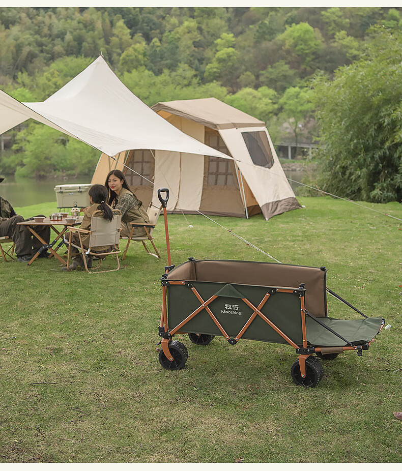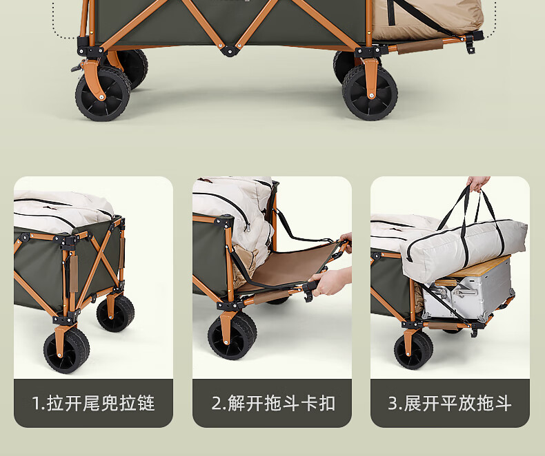 牧行户外聚拢型露营车带桌板户外折叠推车野营地拉车GL1 610L 墨绿MAX加长款+120cm桌板