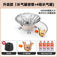 北岳户外便携燃气炉灶分体式防风高山煮茶折叠瓦斯野外露营炊具 【升级款】防风莲花炉【长气罐接管】+4瓶220g进