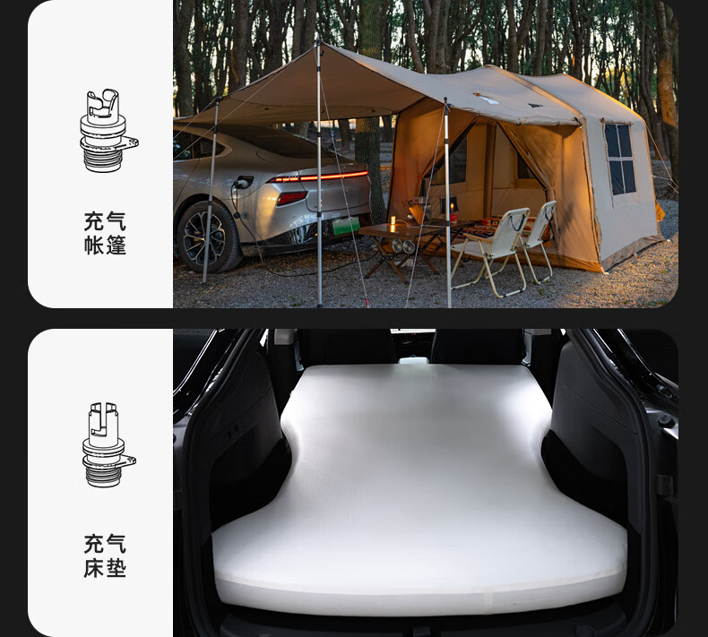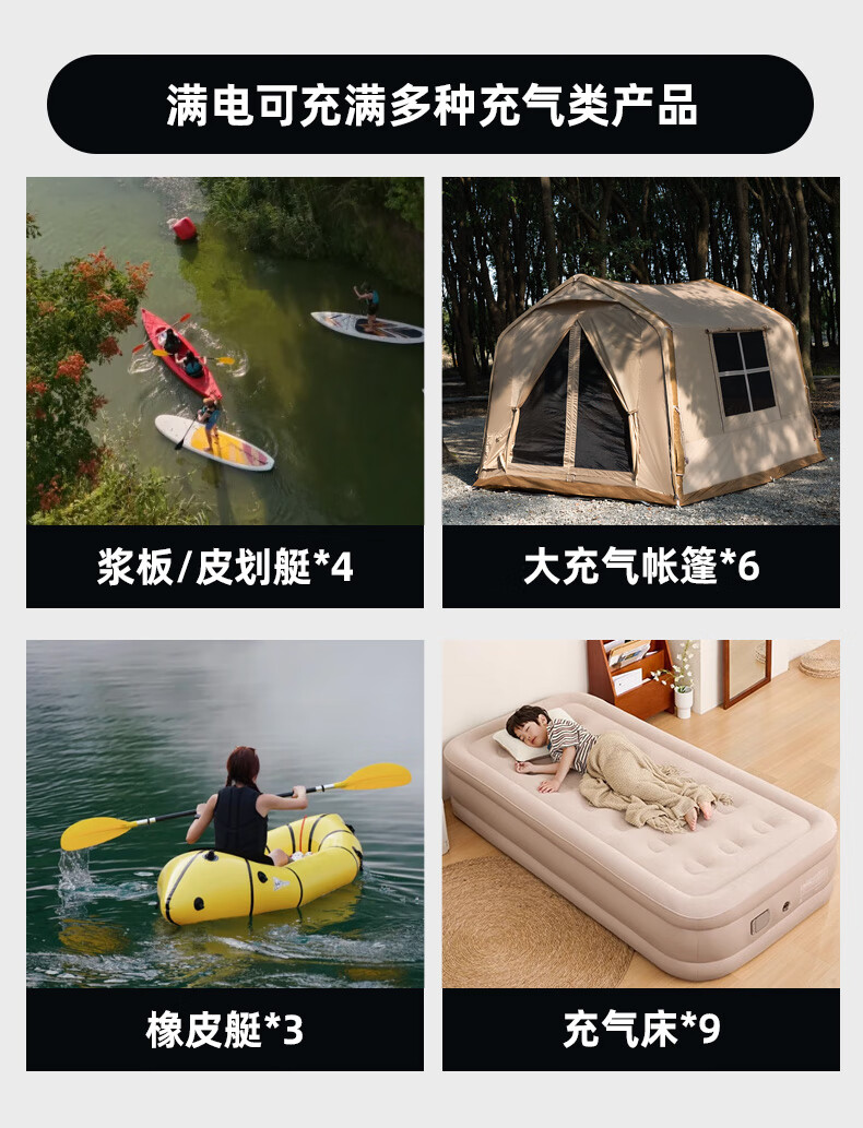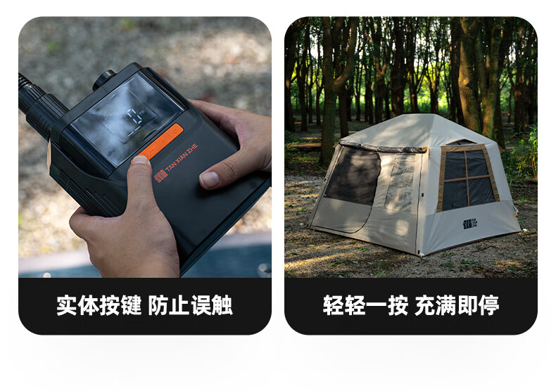 充气速度挺快的,多功能连接头,各种帐篷气垫都能充,还带轮胎的气阀接口,直接全给了,啥都不用操心,操作很方便,长按就开了,然后选择模式和调整气压就行。