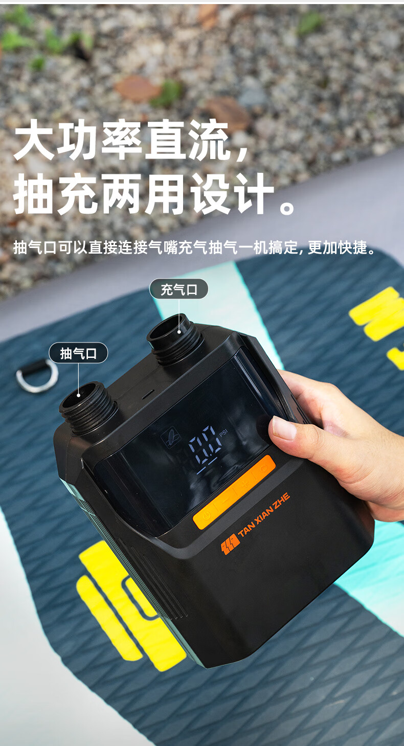 探险者高压户外抽充两用电动充气泵露营帐篷橡皮艇sup浆板垫轮胎 【50psl】双核充气自停泵