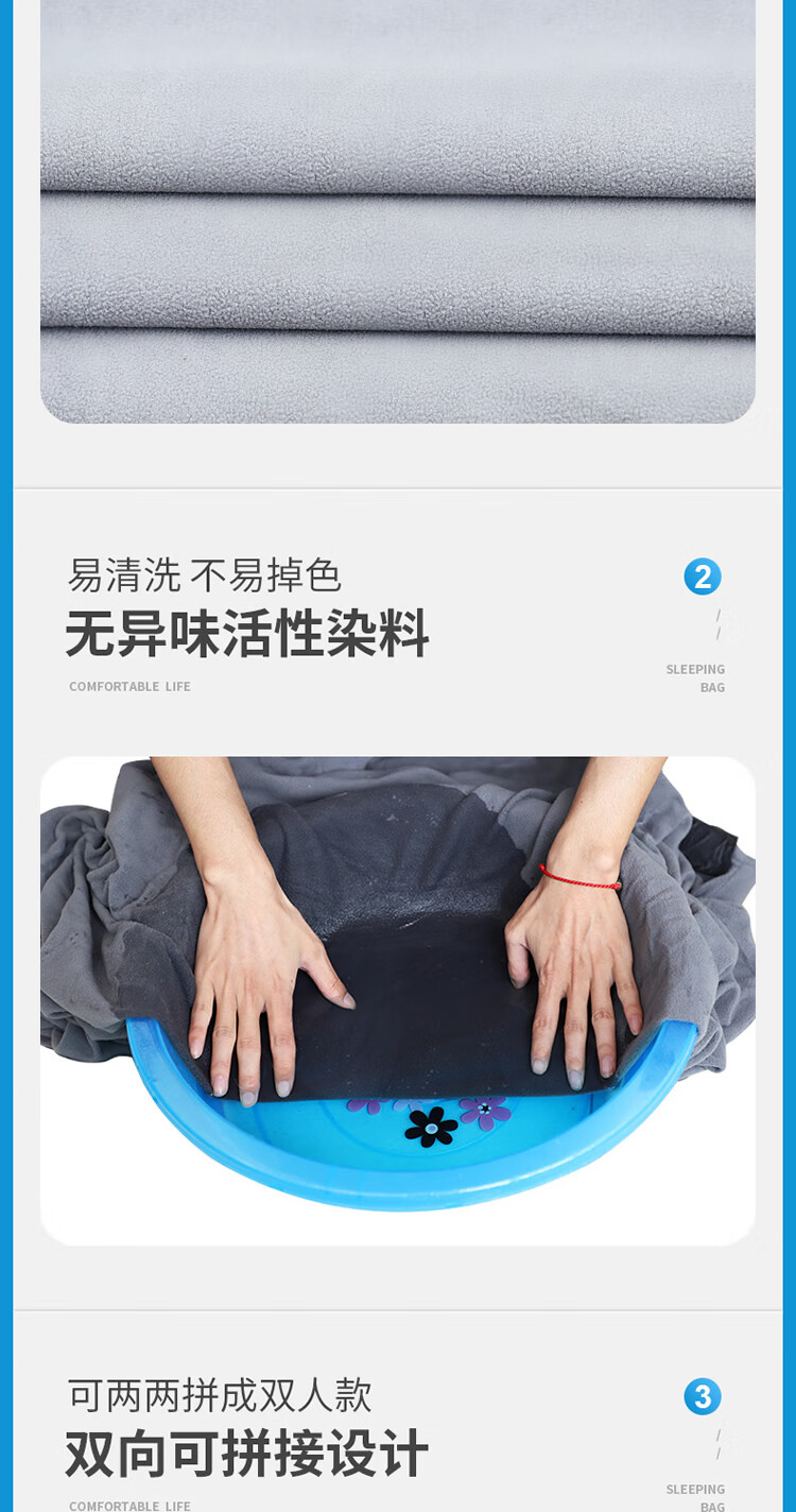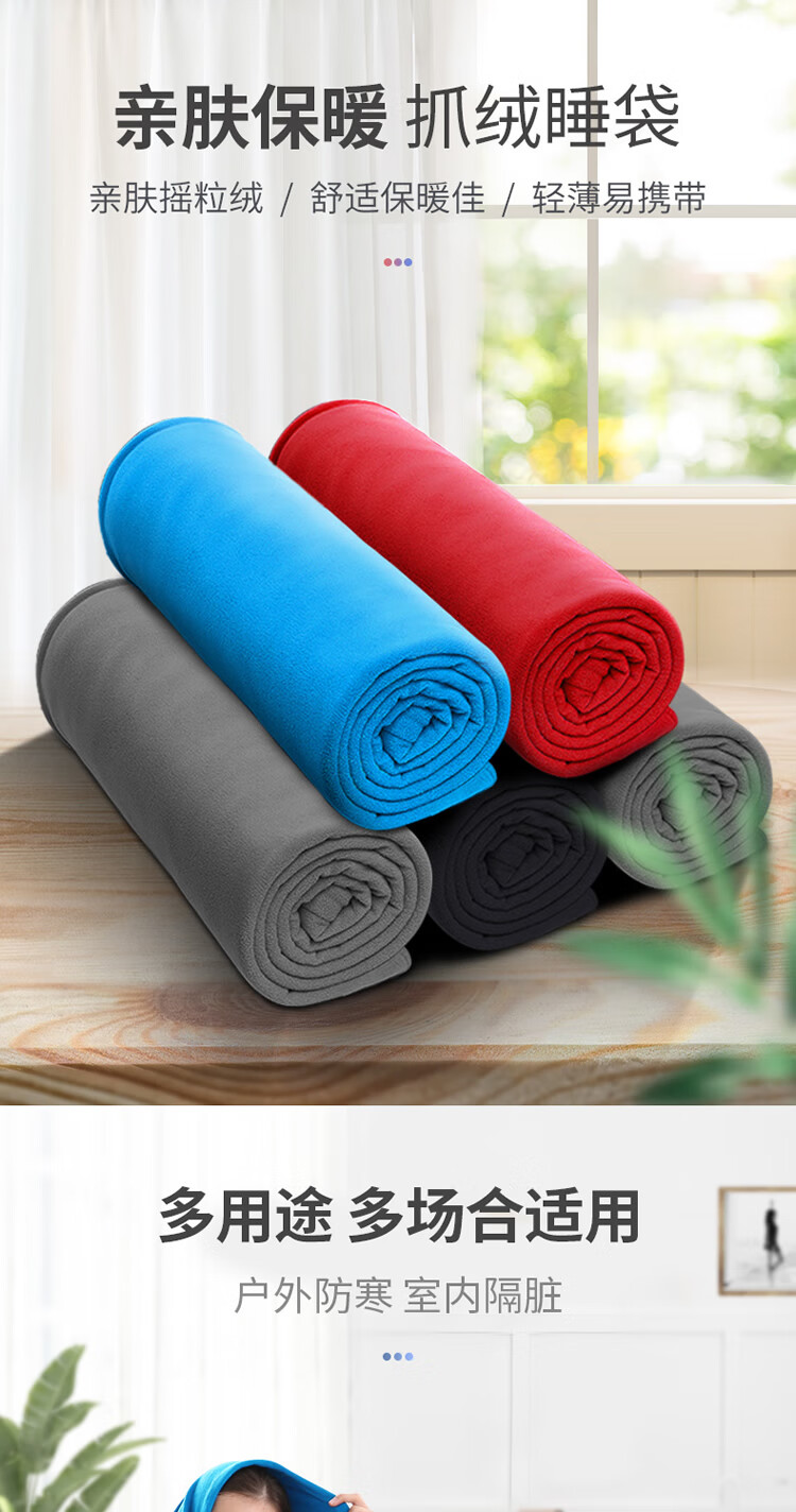驴小贝户外露营超轻信封式双面抓绒睡袋成人旅行睡袋午休毯酒店隔脏内胆 双绒面深灰色
