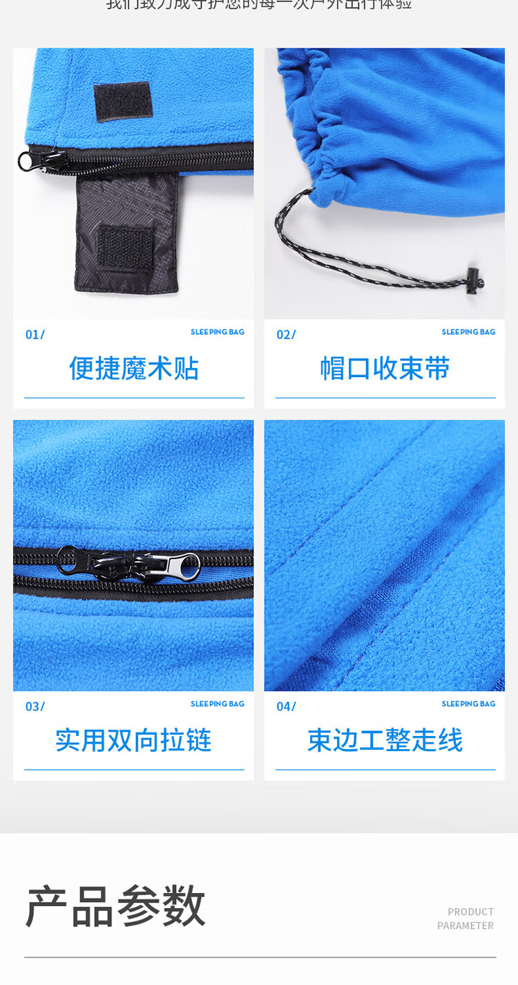 凯路德(KAIROAD) 户外棉睡袋成人四季通用保暖加宽露营便携式办公午休加厚防寒 1350g春秋款-蓝色