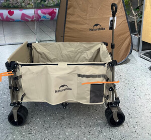Naturehike挪客轻折聚拢小推车后开门拖车户外露营车折叠收纳营地车野餐摆摊 卡其色 275L 有刹车 /185+90L