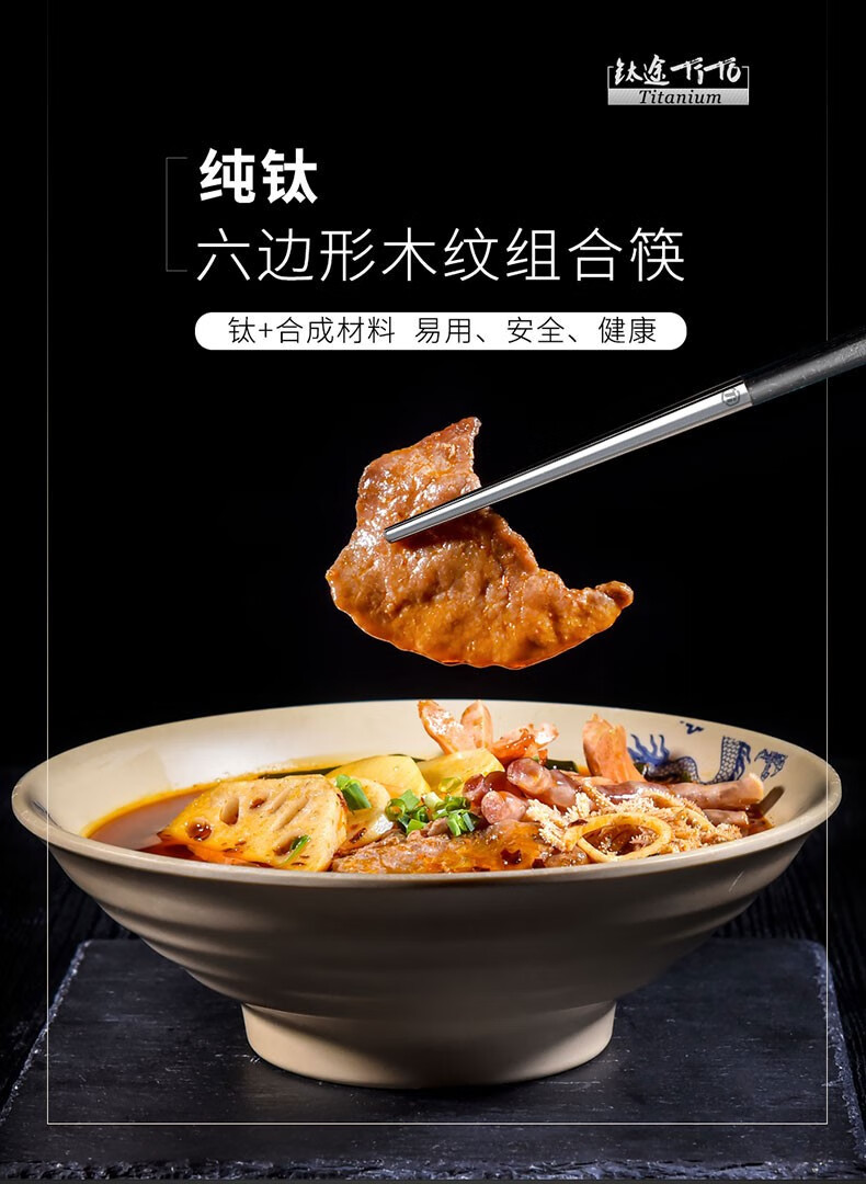 包装简洁大方,筷子端部是钛金属,其他部分是仿木纹的材质,工艺精良,显出几分古朴高档。使用也比较衬手,易于清洁,不长霉不变色z