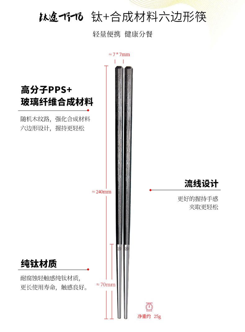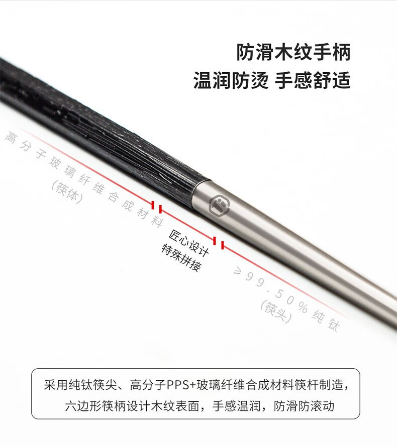 钛途(TITO TITANIUM)纯钛筷子【和】系列99.5%钛合金木纹钛尖高档健康户外餐具安全 【和】纯钛筷子