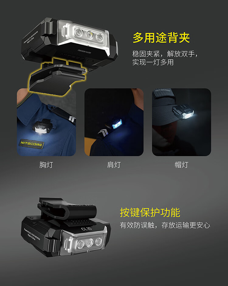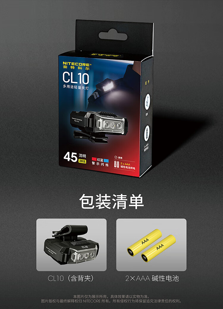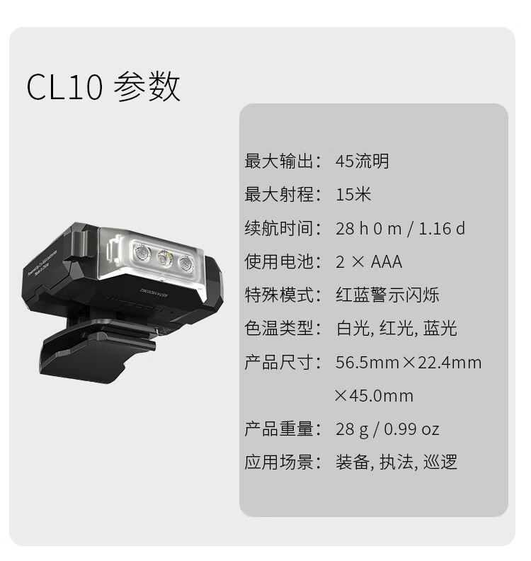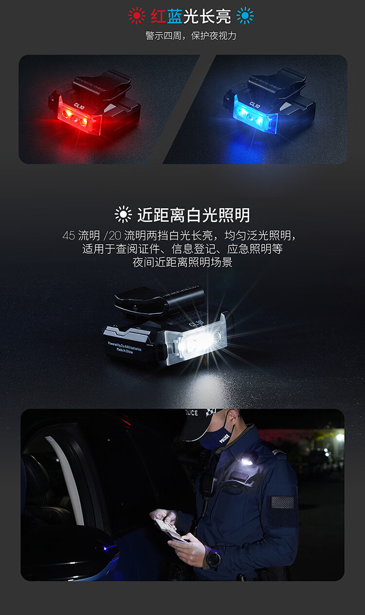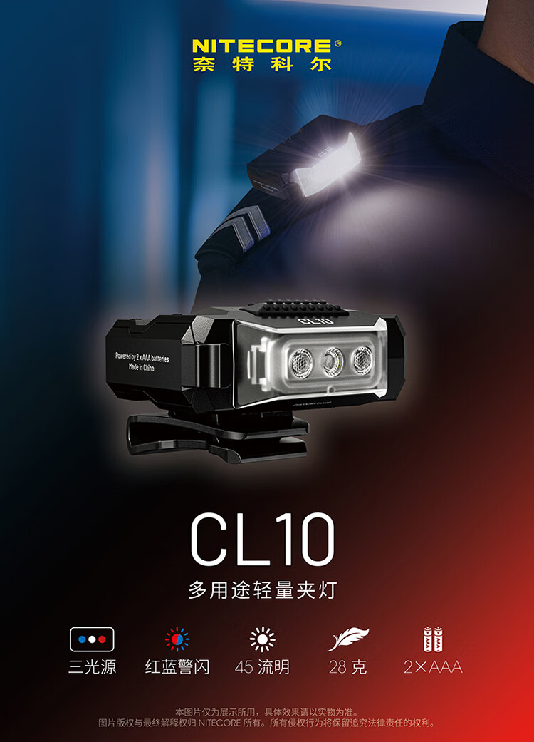 奈特科尔奈特科尔CL10户外多用途轻量夹灯三光源红蓝光照明便携式肩灯帽灯 CL10标配