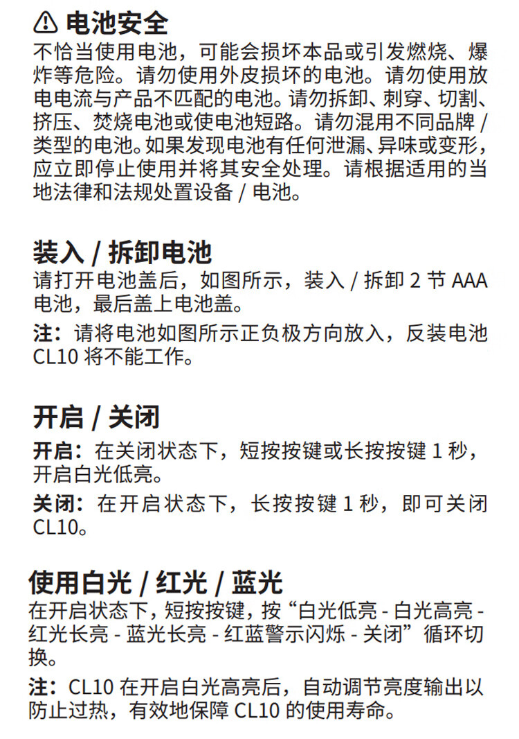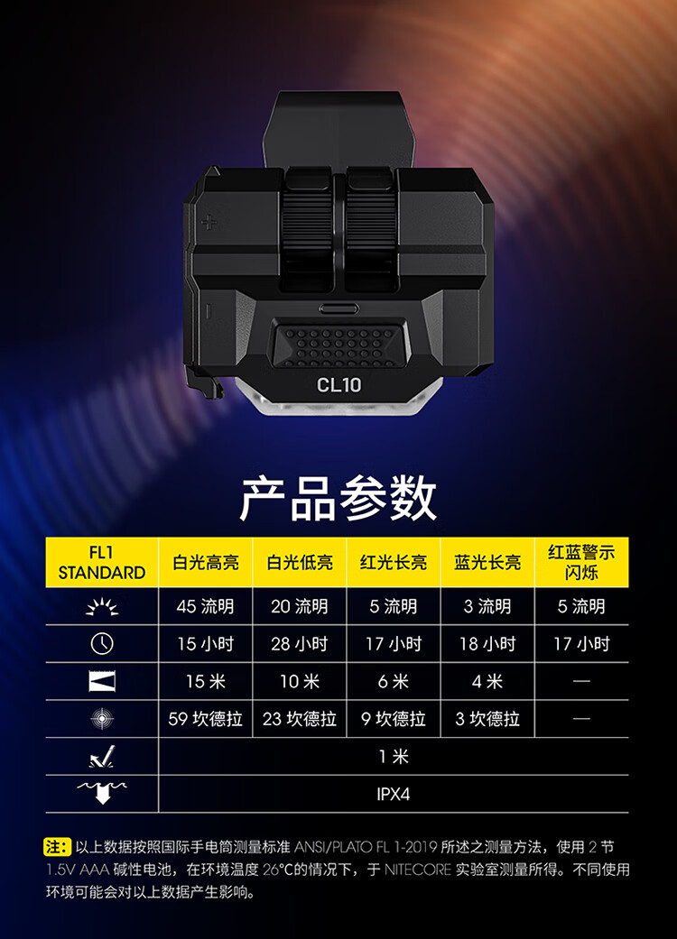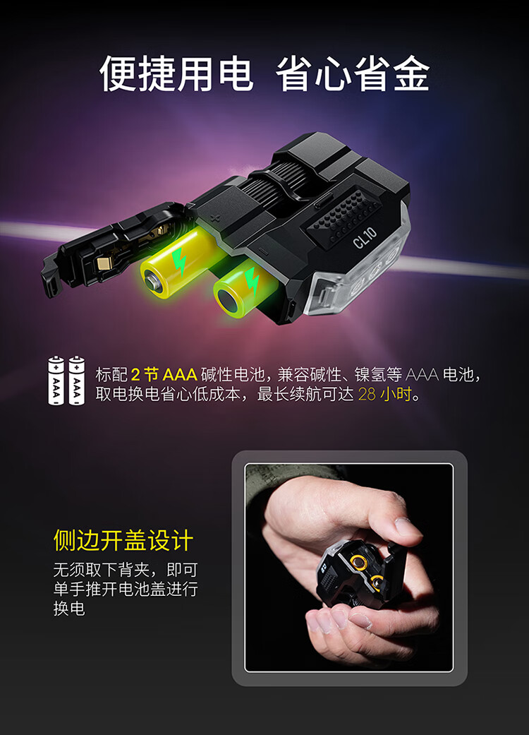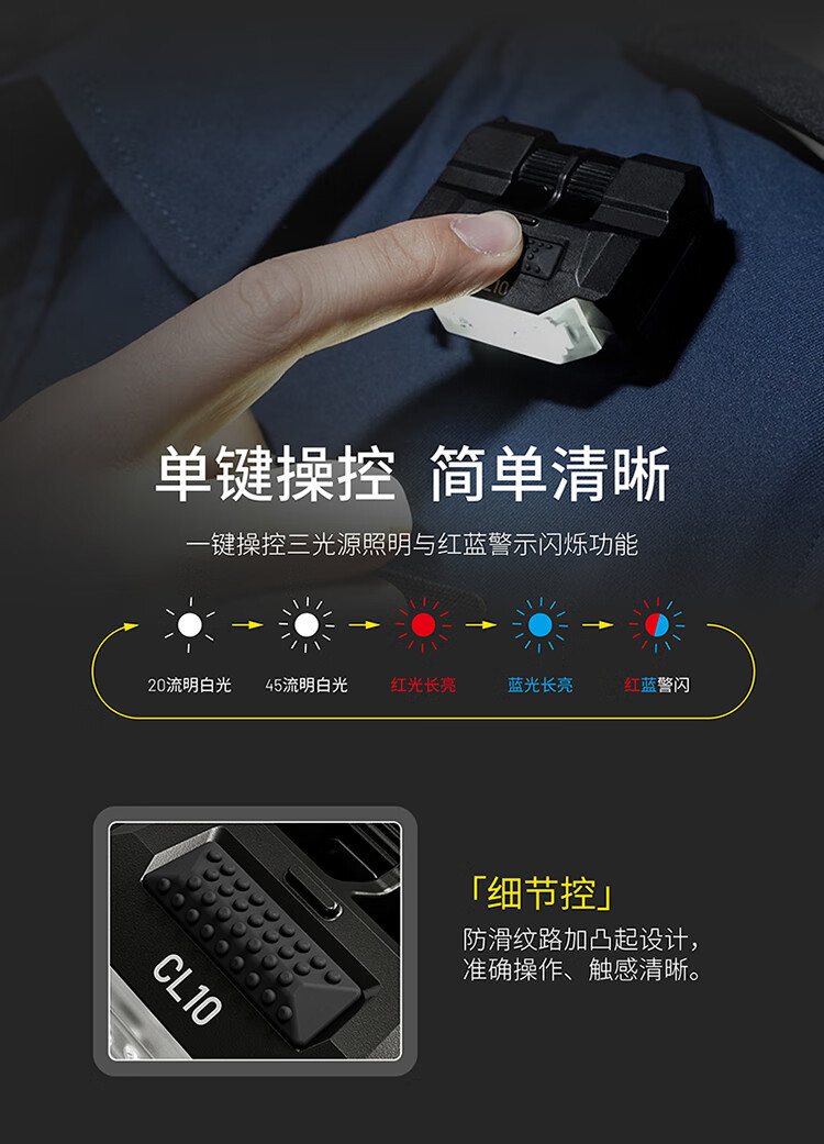 奈特科尔奈特科尔CL10户外多用途轻量夹灯三光源红蓝光照明便携式肩灯帽灯 CL10标配