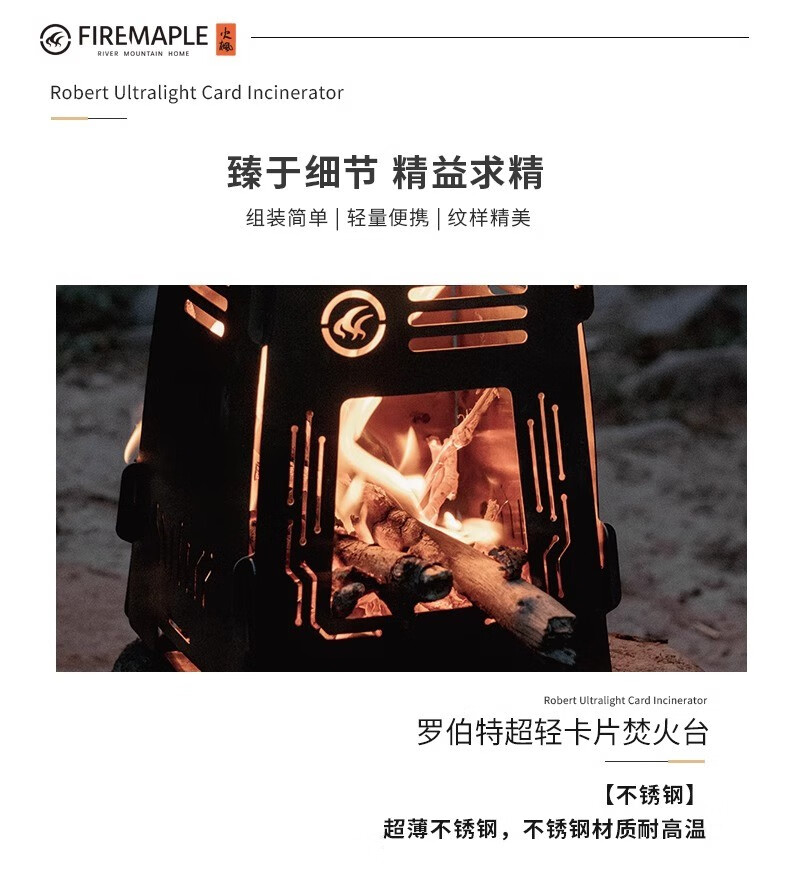 火枫(FIRE-MAPLE)火枫罗伯特超轻卡片焚火台炉头户外露营BC徒步烧水骑行 罗伯特卡片焚火台(纯钛版)