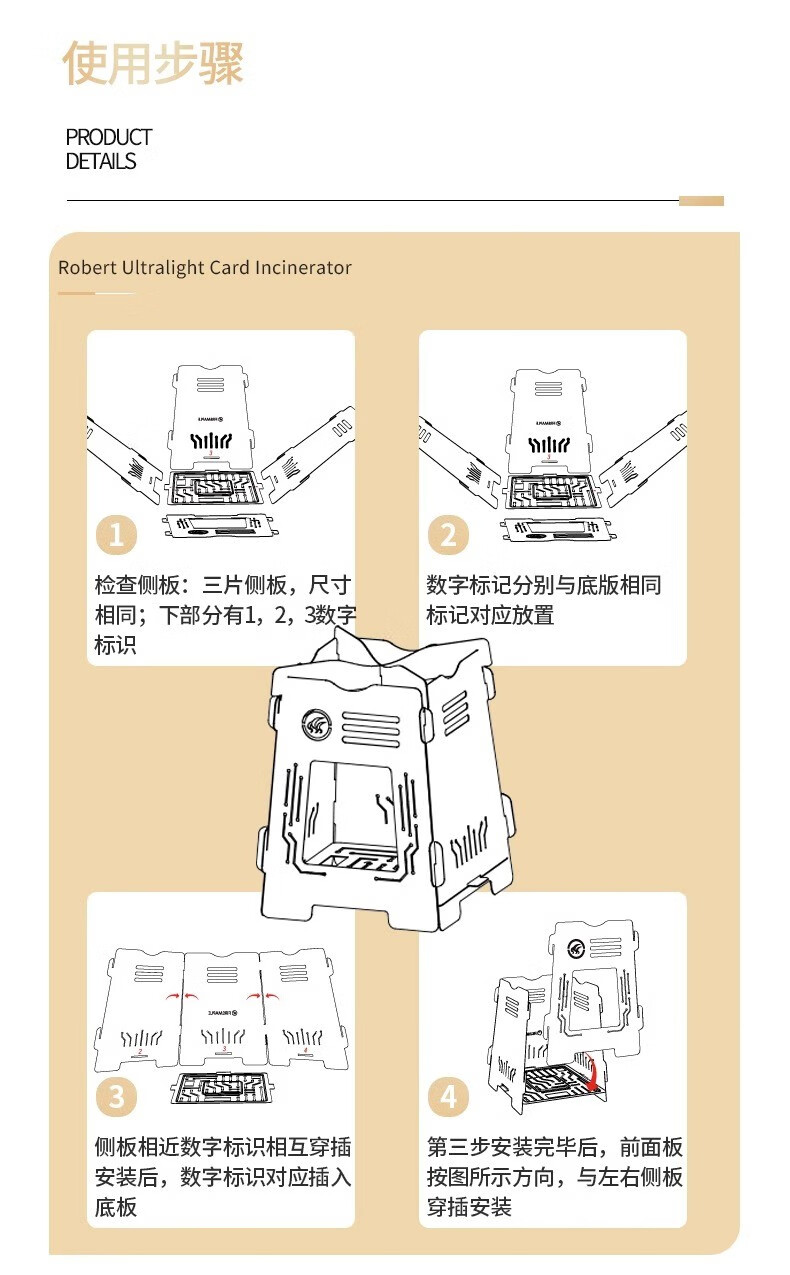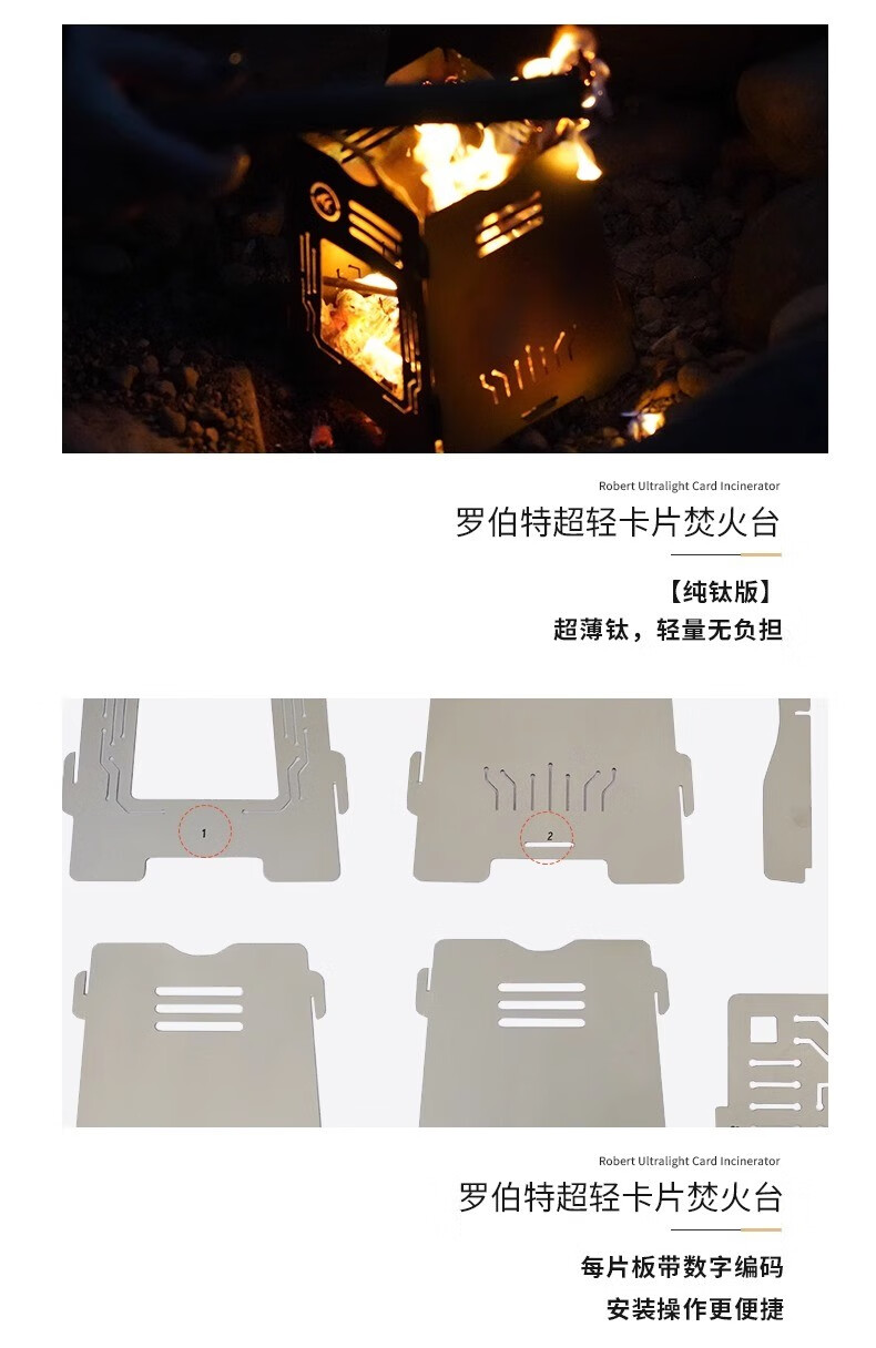 火枫超轻卡片焚火台炉头户外露营BC徒步烧水骑行 罗伯特超轻卡片焚火台(纯钛版)