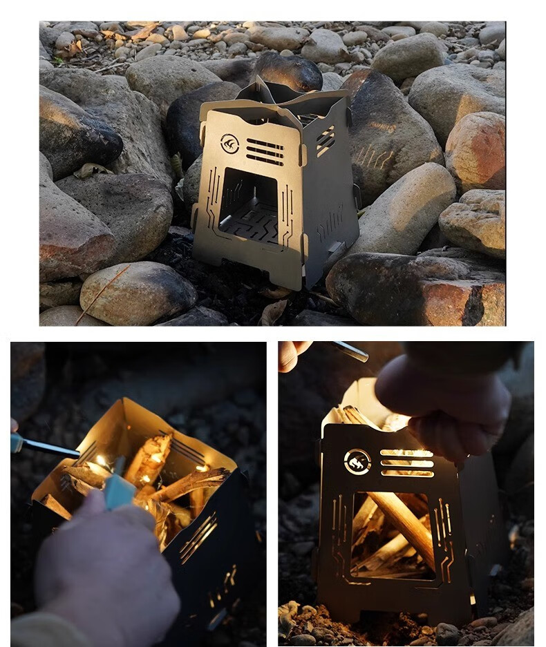 Ti artisan钛工匠户外纯钛木柴炉木炭炉便携组装插卡式折叠炉野营炉具小炉子