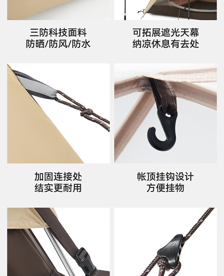 柏潮户外天幕便携加厚黑胶银胶野营野餐抗风防雨遮阳棚露营装备 卡其色 涂银款天幕防雨送全套工 方形长0.36*0.36米丨1人用