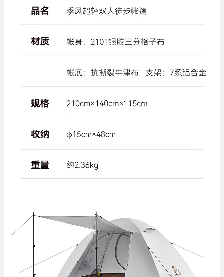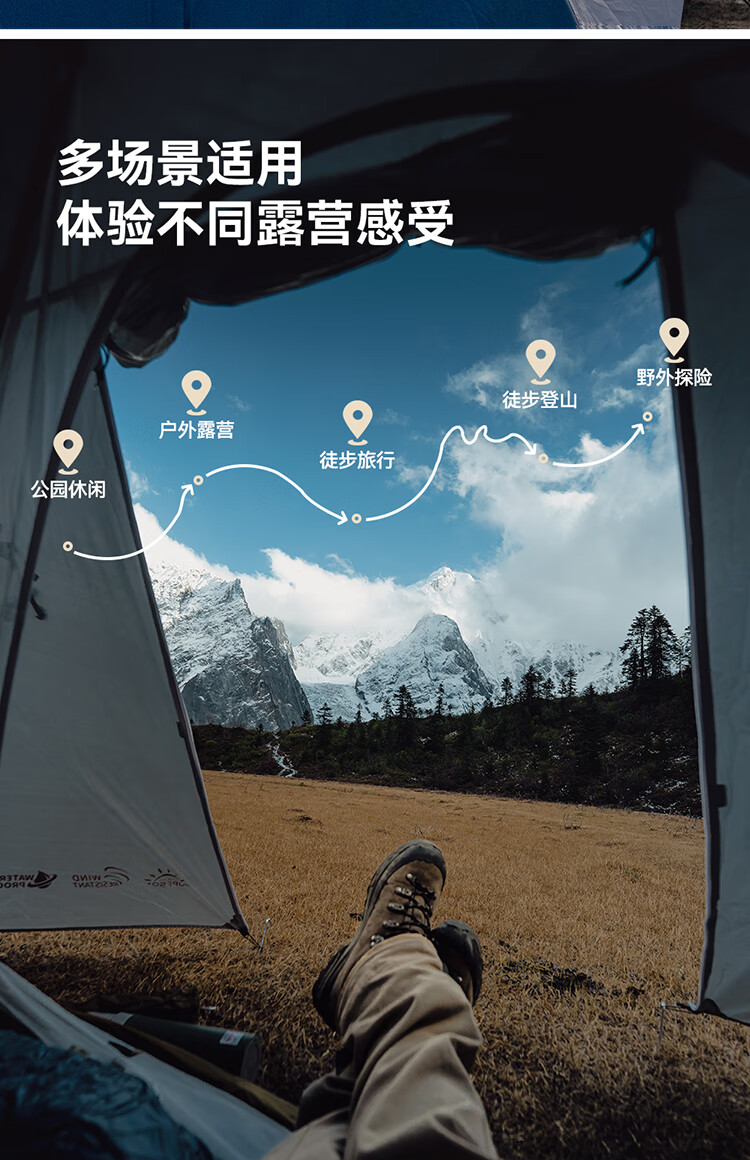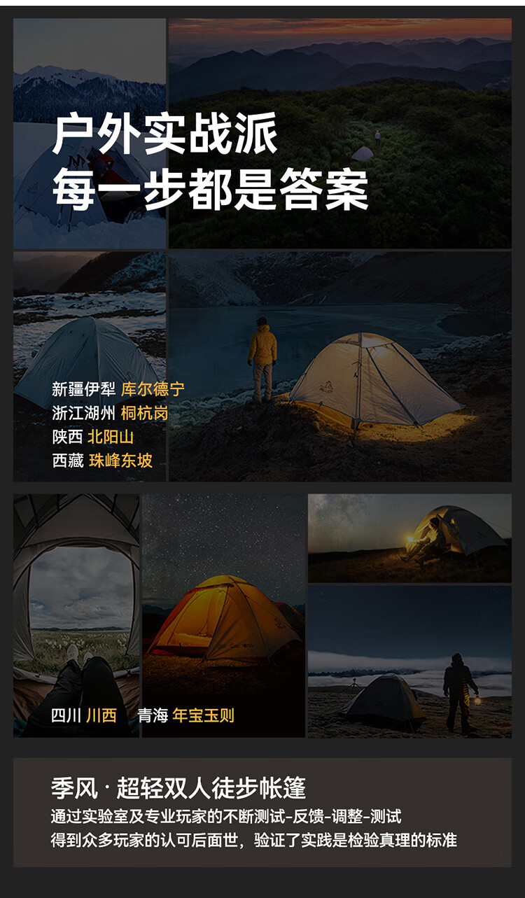 今年准备骑行,原本我有两个帐篷发现比较大,在网上发现伯希和的这款帐篷收纳起来比较合适,果断下单,到货后对比一下小很多自行车携带方便。友情提醒下单的时候顺手买一个防潮垫。