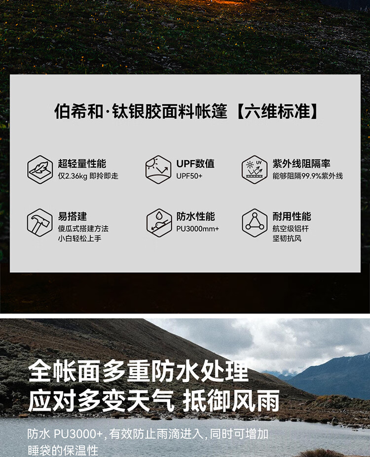 伯希和牌--户外帐篷,刚刚收到了,拆开包裹看,伯希和户外帐篷,做工质量好,使用起来,比较满意,发货快,物流很快,服务好,推荐购买,下次再来。