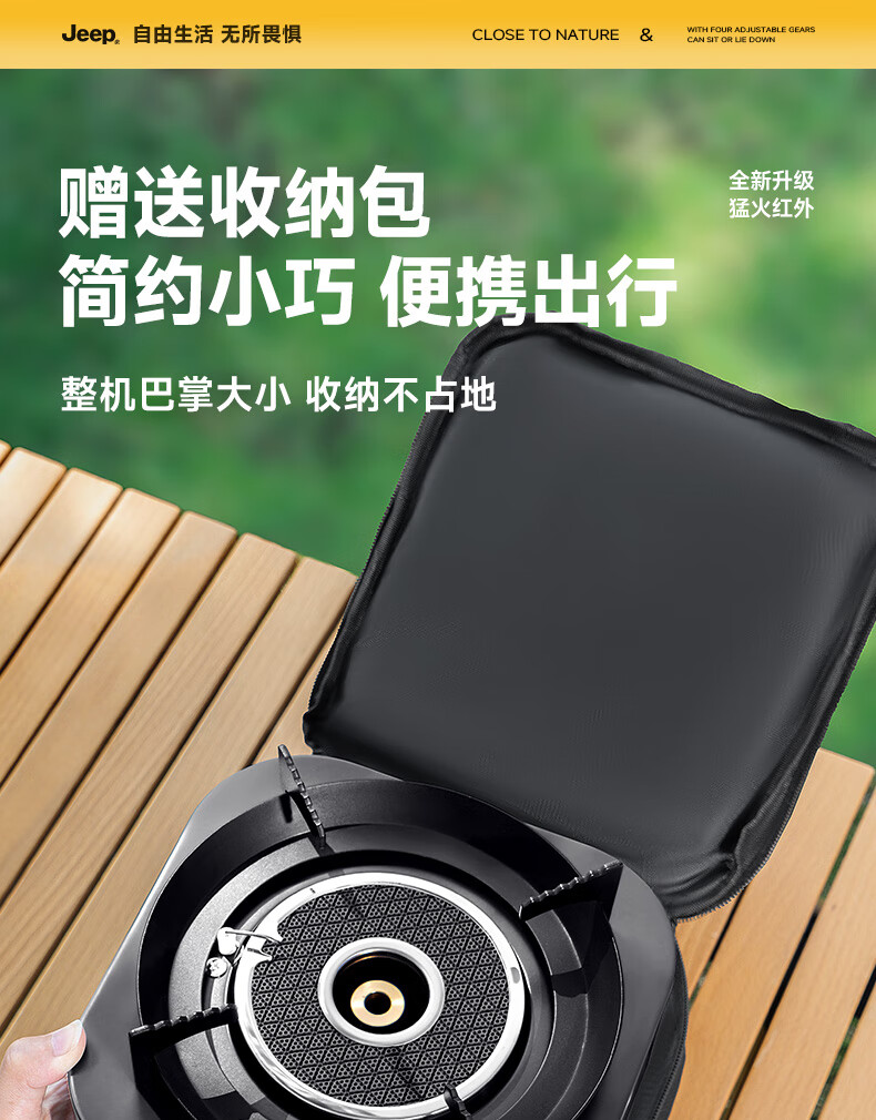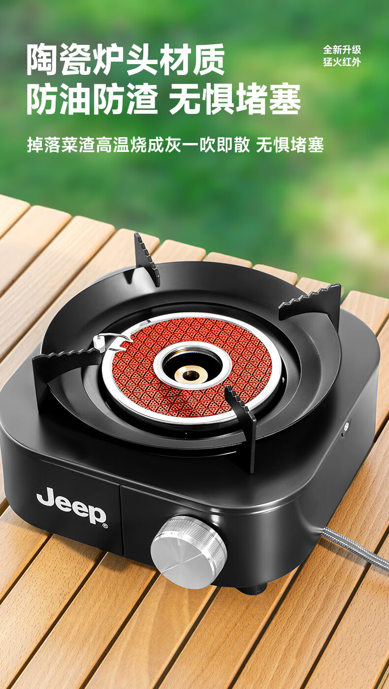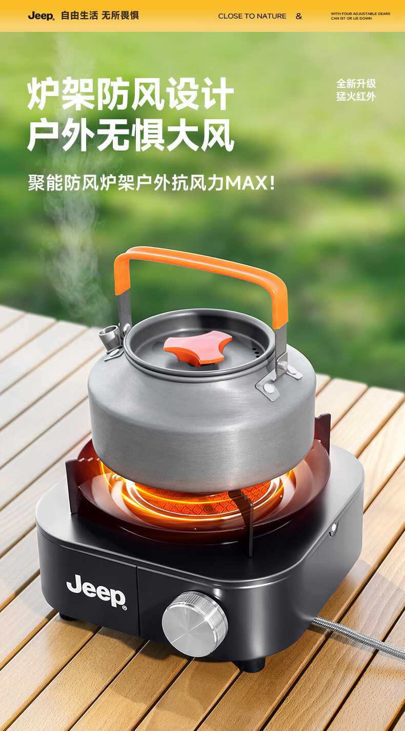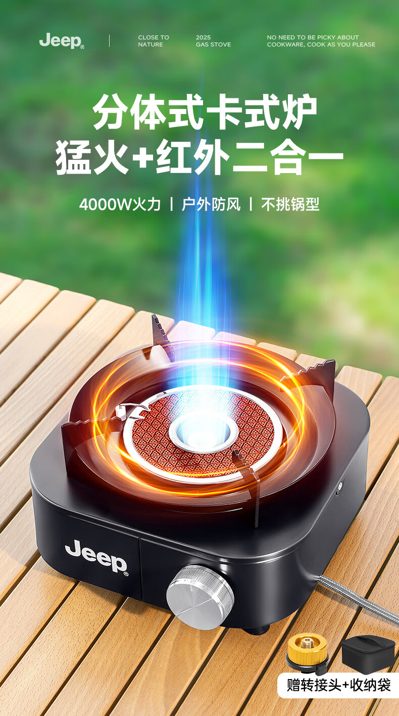 JEEP户外便携卡式炉炊具煮茶炉红外线防风分离式装备二合一式卡式炉 钢灰-【猛火红外二合一】+收纳箱+转接头