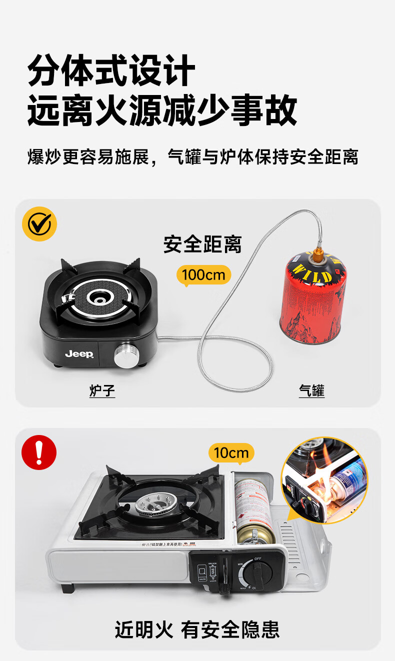 千奇梦卡式炉便携式野外炉具防风防爆分体式户外露营野炊迷你炉小四 A款-直接接长气罐