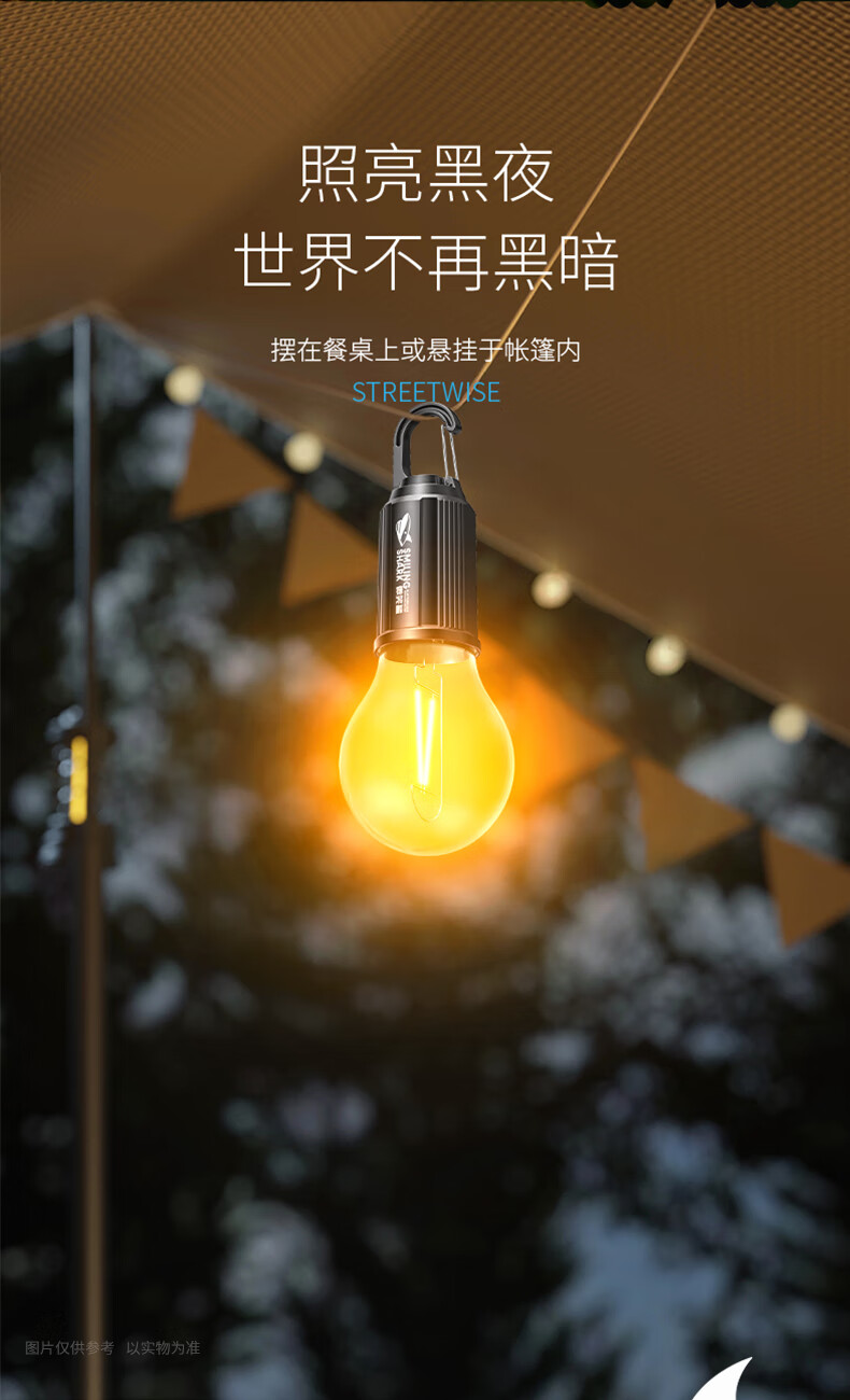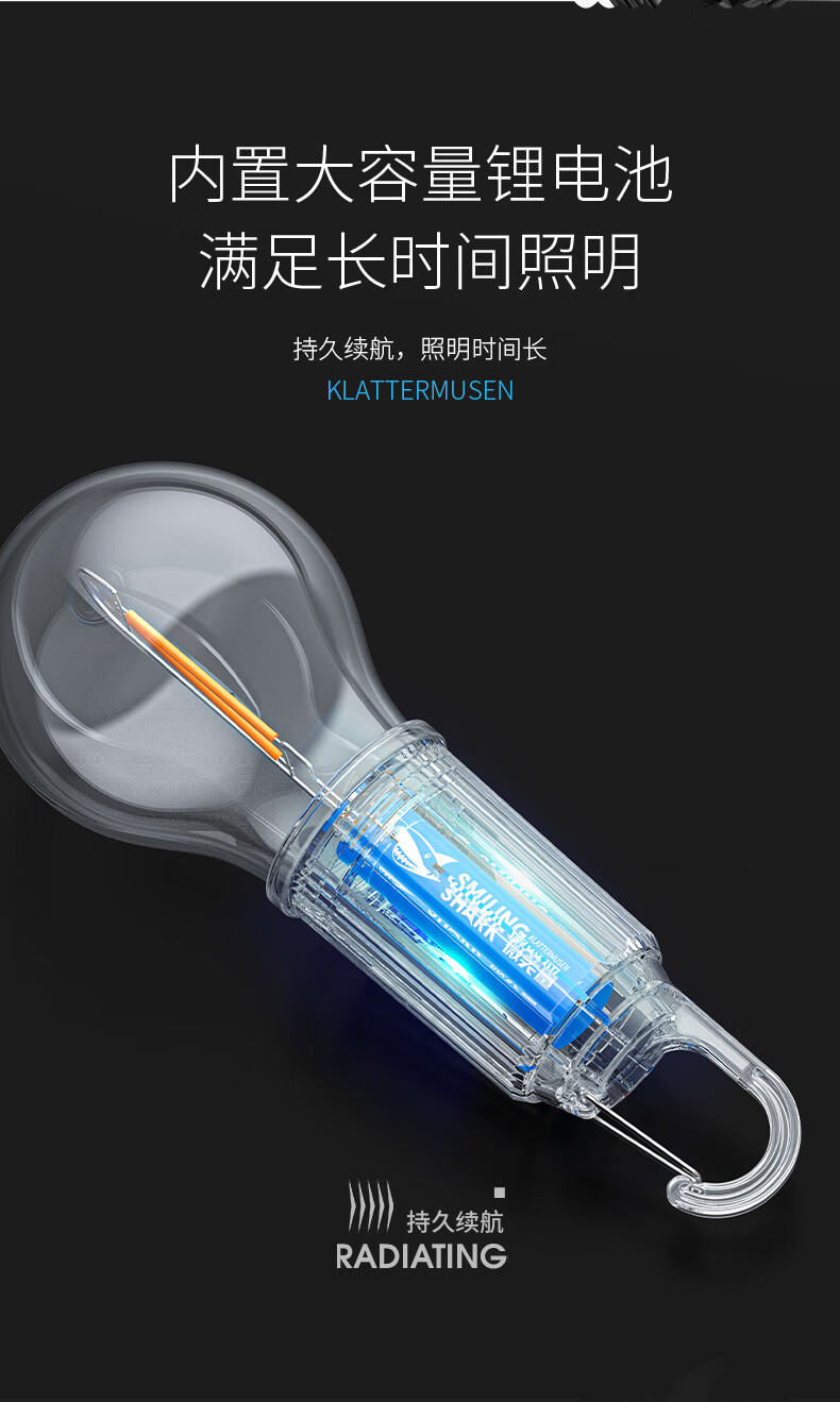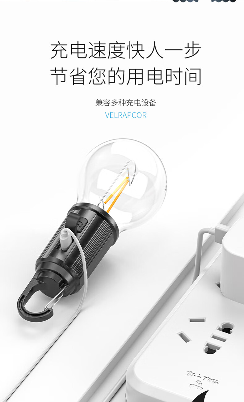 微笑鲨TypeC充电led灯泡停电应急USB移动超亮可充电户外夜市摆摊露营灯 高亮【COB-充电灯泡】露营/摆摊 超长续航+挂钩设计+3档调节