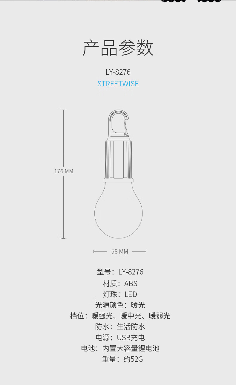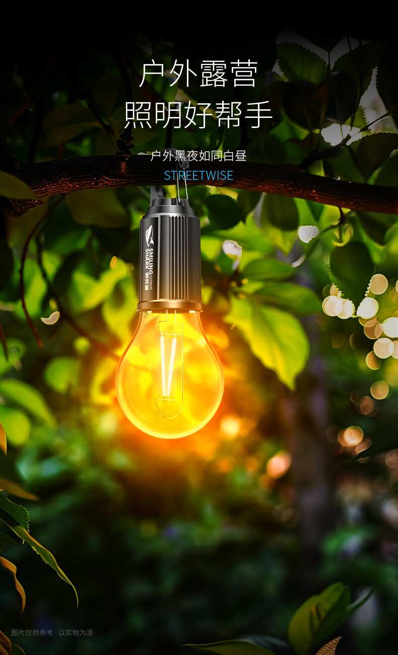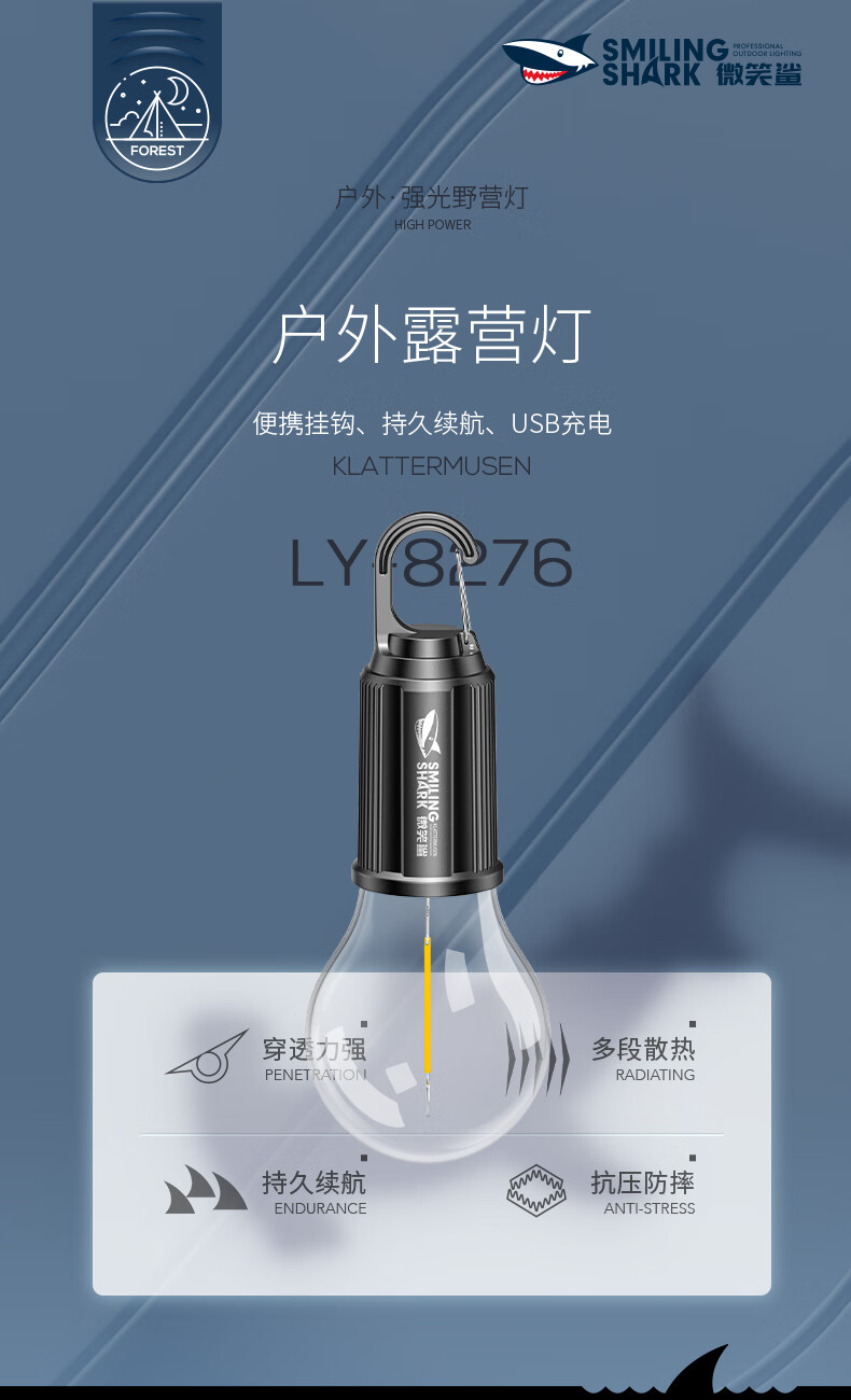 微笑鲨TypeC充电led灯泡停电应急USB移动超亮可充电户外夜市摆摊露营灯 高亮【COB-充电灯泡】露营/摆摊 超长续航+挂钩设计+3档调节