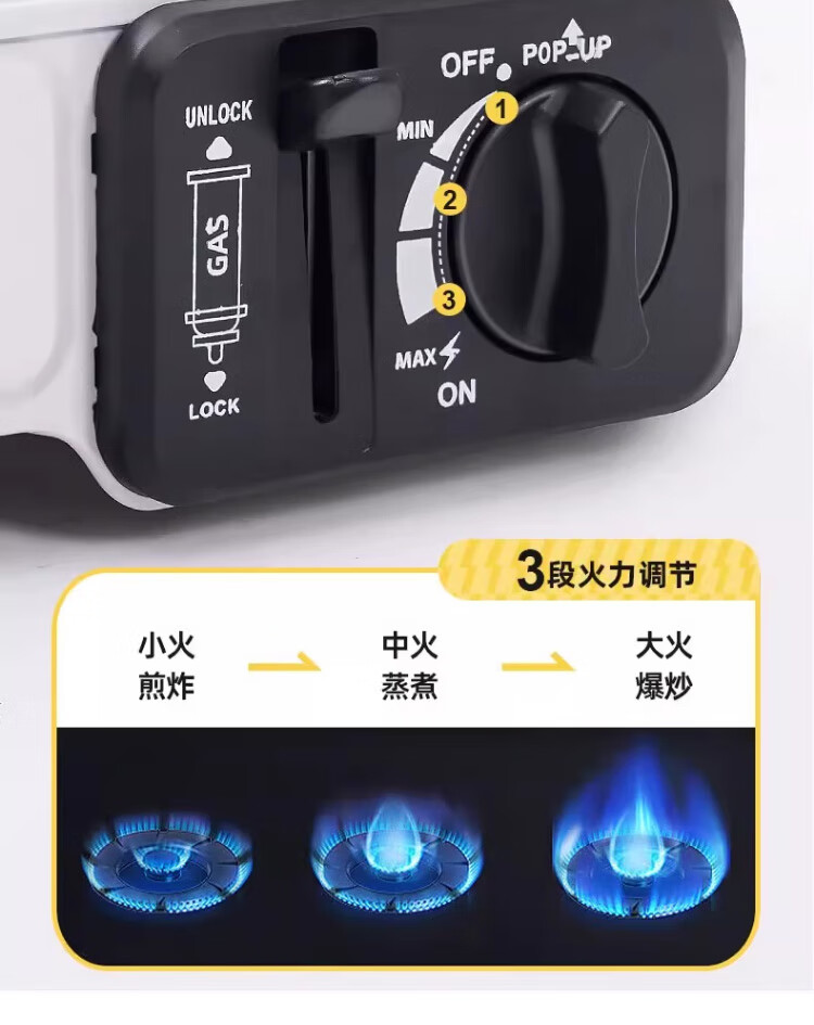 这款卡式炉真的太实用了!点火秒启动,火焰稳定不飘忽,炒菜、煮火锅、户外露营做饭都给力。炉身轻巧便携,收纳不占空间,提着就走超方便。做工扎实,防风设计到位,户外有风也不影响使用。火力调节灵活,升温快还省气,用完清洁简单,家庭日常或户外出行都适配,性价比超高,已经推荐给身边朋友了!