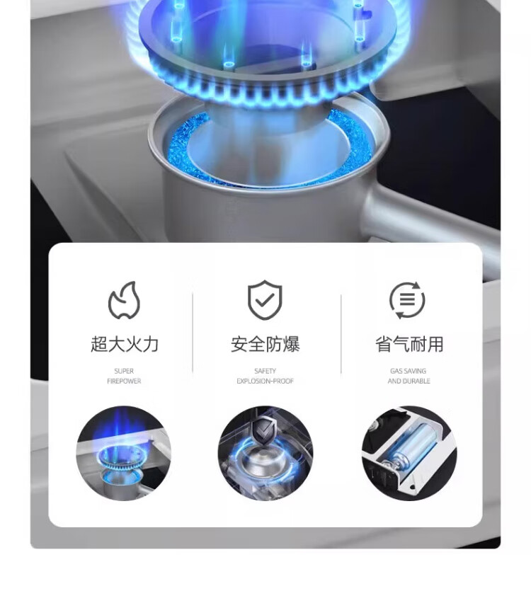 携带方便,火力非常猛,使用起来非常方便,器具给的非常全面,刷子剪刀防火罩夹子都有,还送了一个煎锅煎东西煎牛排煎饼都非常的方便