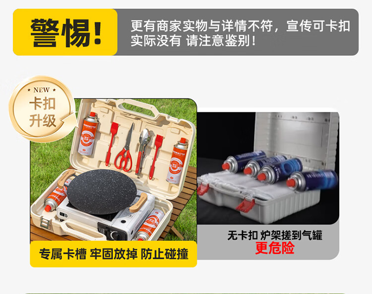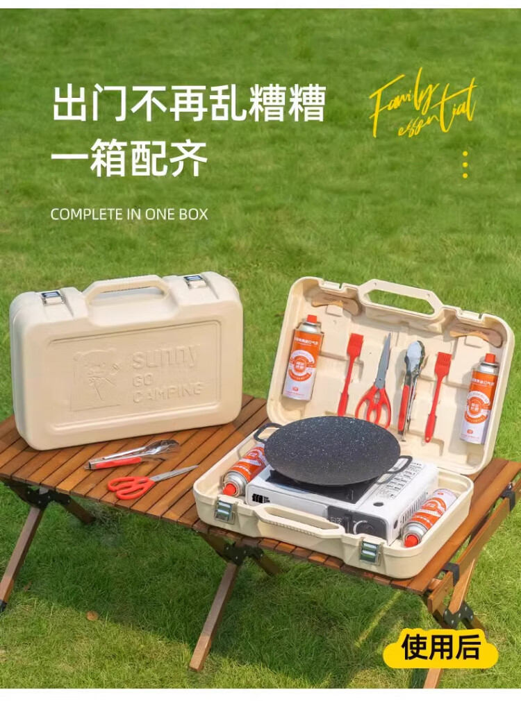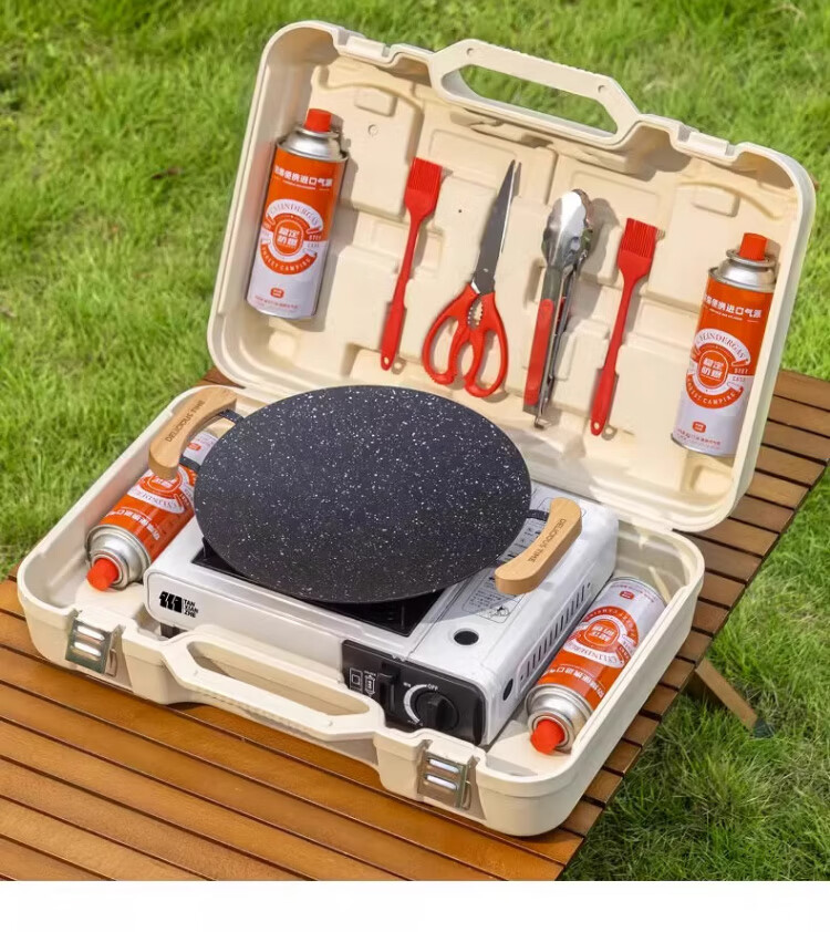 1. 露营全套配齐超省心!防爆炉具安全耐用,烤盘导热快,明火稳定不卡顿,收纳便携不占地,野餐烧烤一锅搞定,性价比拉满~ 2. 户外神器!防爆卡式炉火力足,烤盘不粘易清洁,全套装箱收纳方便,组装简单上手快,露营野餐烧烤都合适,质感在线超实用! 3. 防爆设计超安心,炉具火力可控,烤盘厚实耐高温,全套配齐不用额外购置,便携好带,露营聚餐氛围感直接拉满,新手也能轻松驾驭~