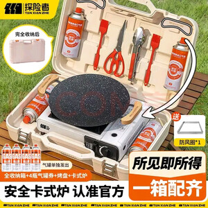 探险者卡式炉户外卡式炉具套装防爆卡磁炉全套带锅烤盘露营野餐烧烤卡斯 【304不锈钢】炉具锅具灶3-4人