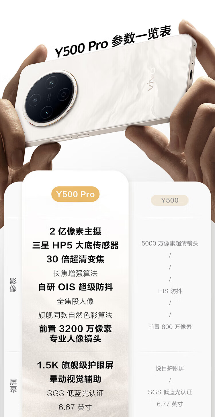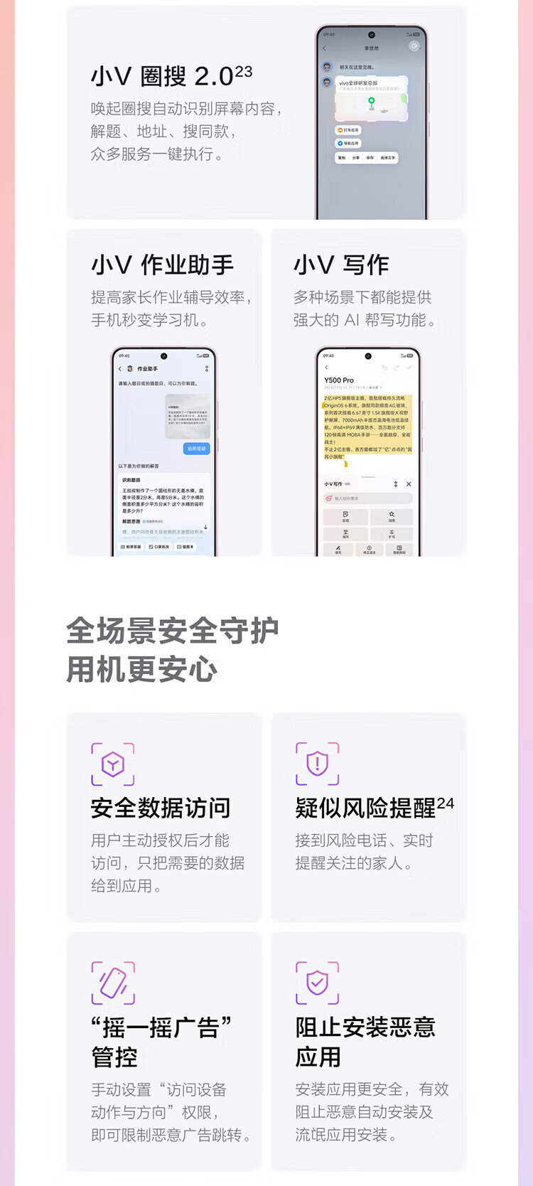 vivo Y500 Pro 2亿HP5旗舰级主摄 7000mAh蓝海电池 IP68+IP69满级防水 AI影像手机 柔粉 8GB+128GB 官方标配