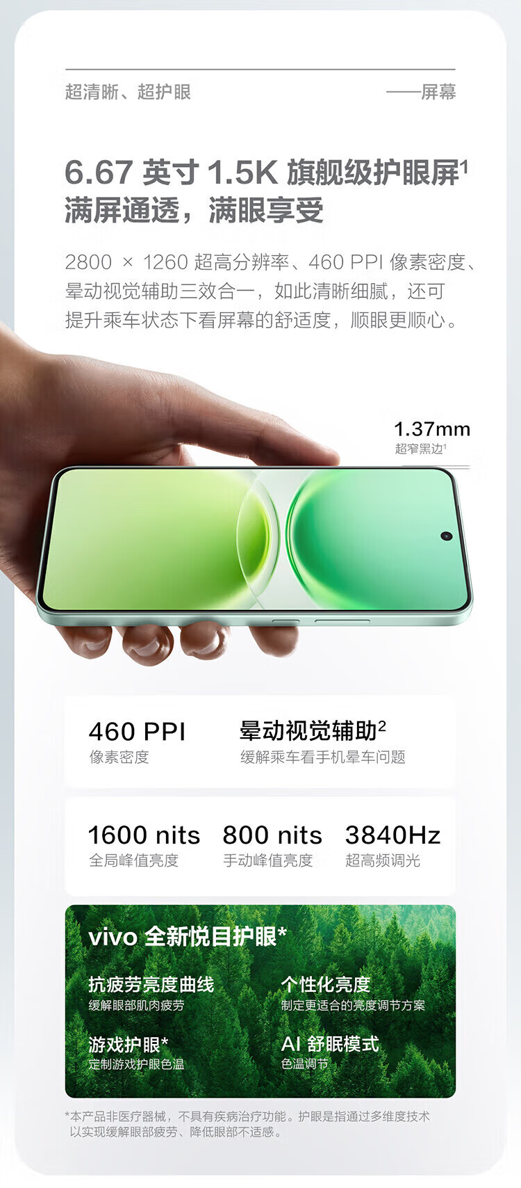 vivo Y500 Pro 2亿像素旗舰主摄 7000mAh+90W 防水 NFC+红外线 5G手机 浅绿 12G+256G