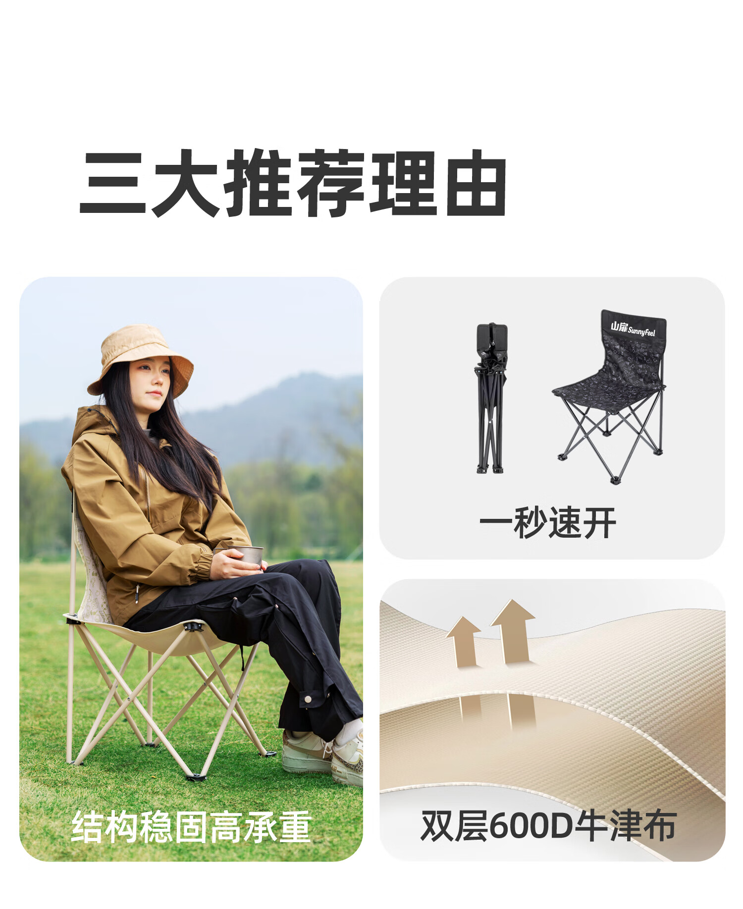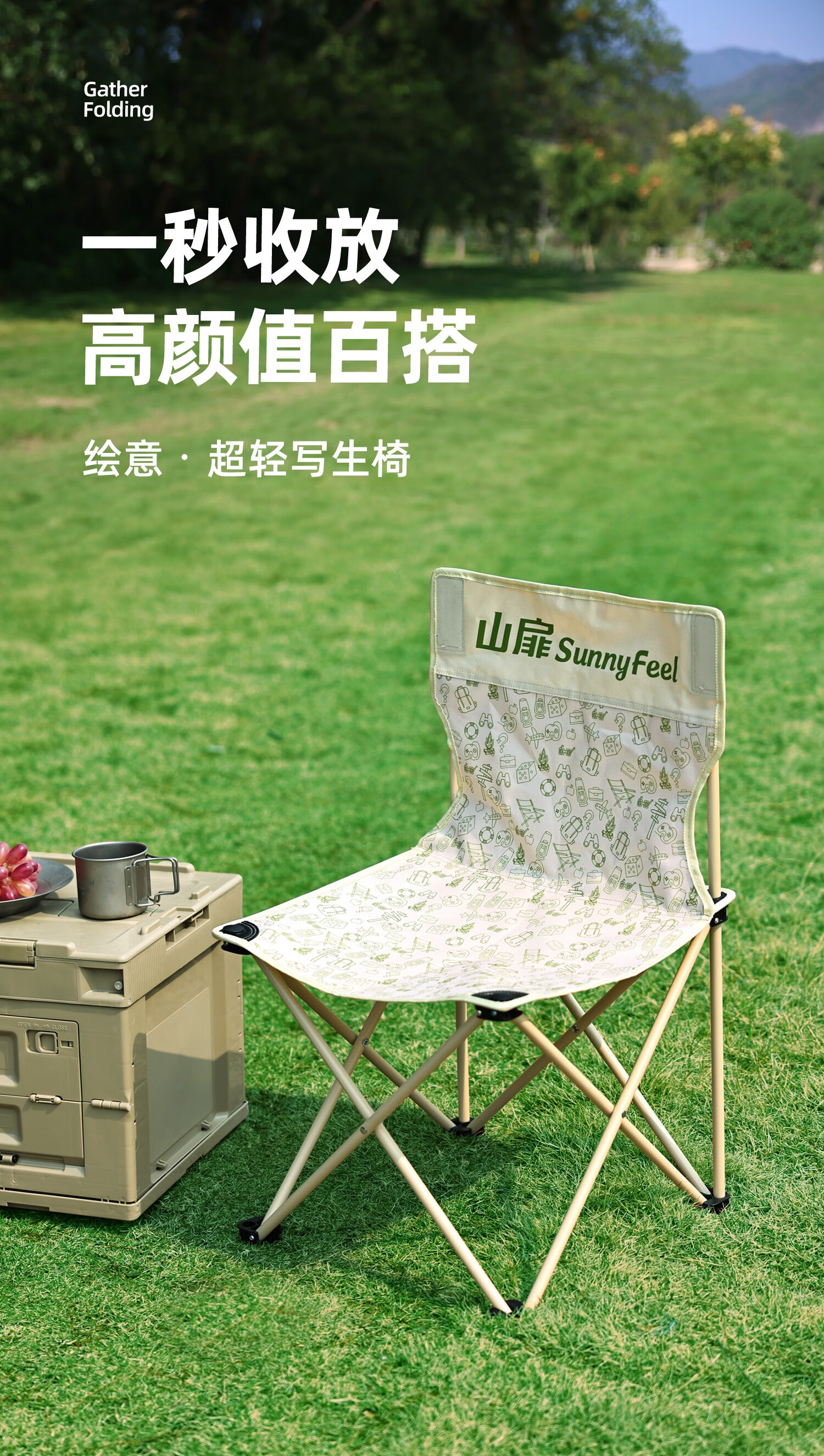 山扉户外折叠椅便携折叠凳小马扎钓鱼露营椅子野餐桌椅美术写生椅 小号折叠写生椅卡其·带收纳袋