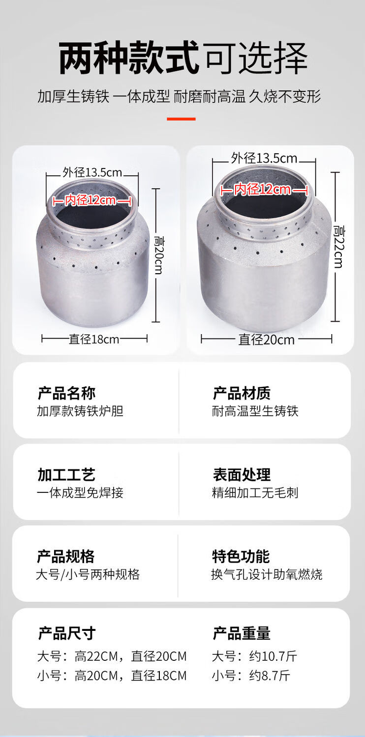 气化无烟柴火炉内胆新型膛特厚铸铁胆灶柴家用火猛效果好 大号加厚多孔净面铸铁内胆