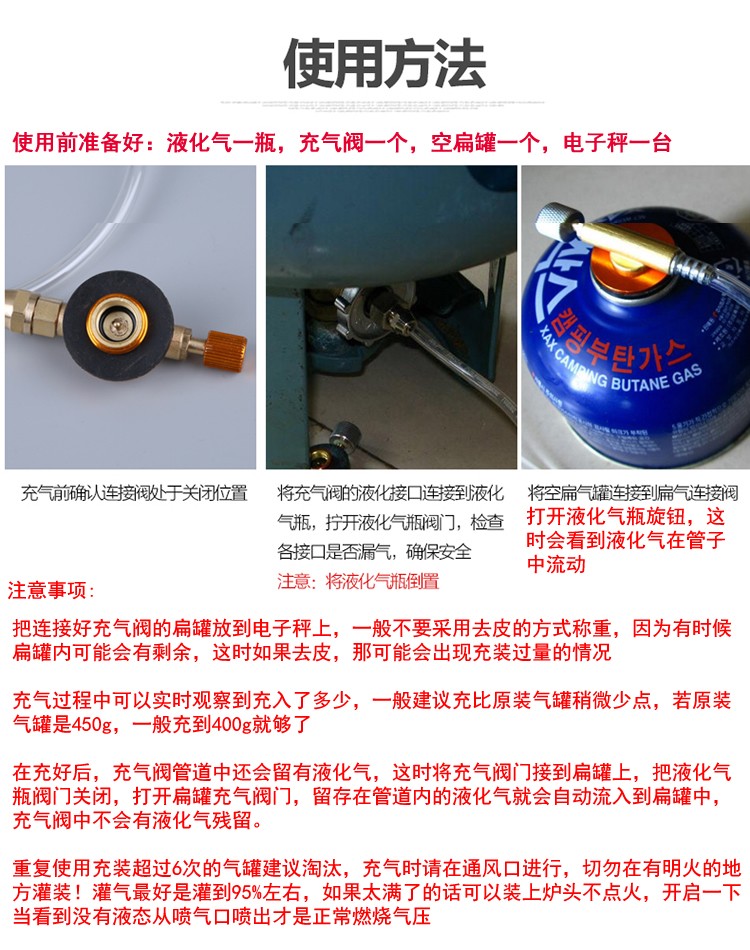 LNGA LANDGRE户外炉子燃气充气阀转换液化气导气煤气卡磁炉卡式炉充气转接头 长气扁气充气阀