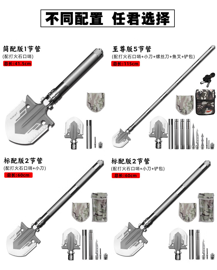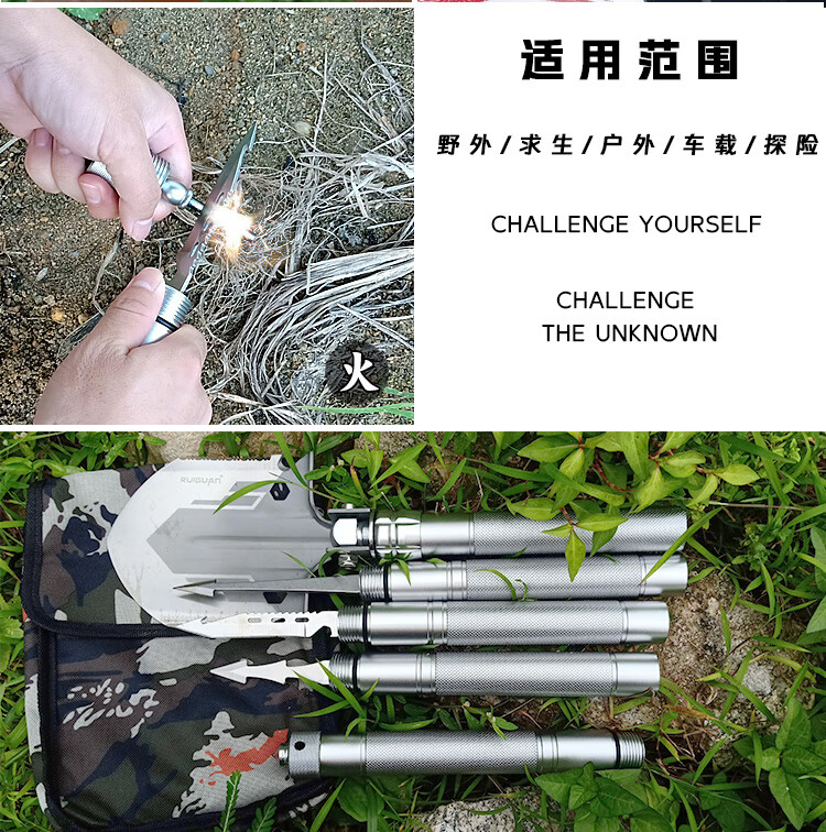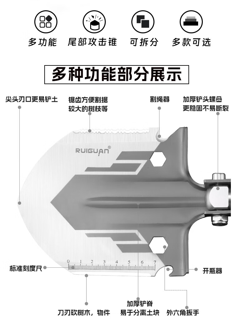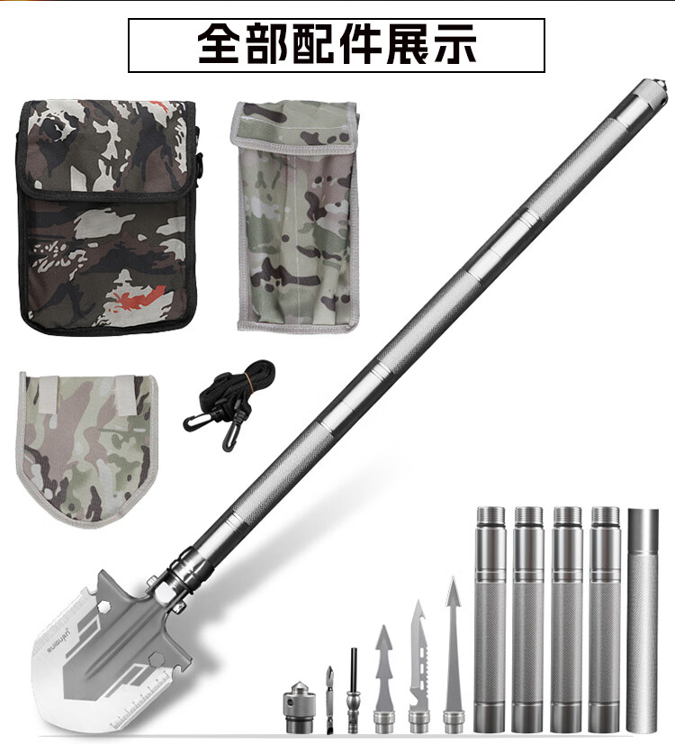 我的RUlGUAN多功能军工铲户外活动用品.折叠锰钢兵工铲收到了.非常精致坚固.方便实用.包装精美适合私家车野外钓鱼野炊的铲子.至尊版五节115cm的豪华包装.。很好👍