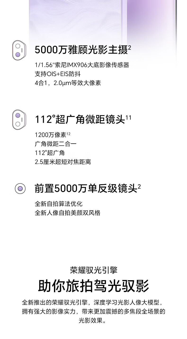 荣耀300 新品上市5G手机 超薄小直屏单反级双防抖主摄100W快充 AI拍照 荣耀300 庐烟紫 12GB+256GB 全新简配版+全国联保