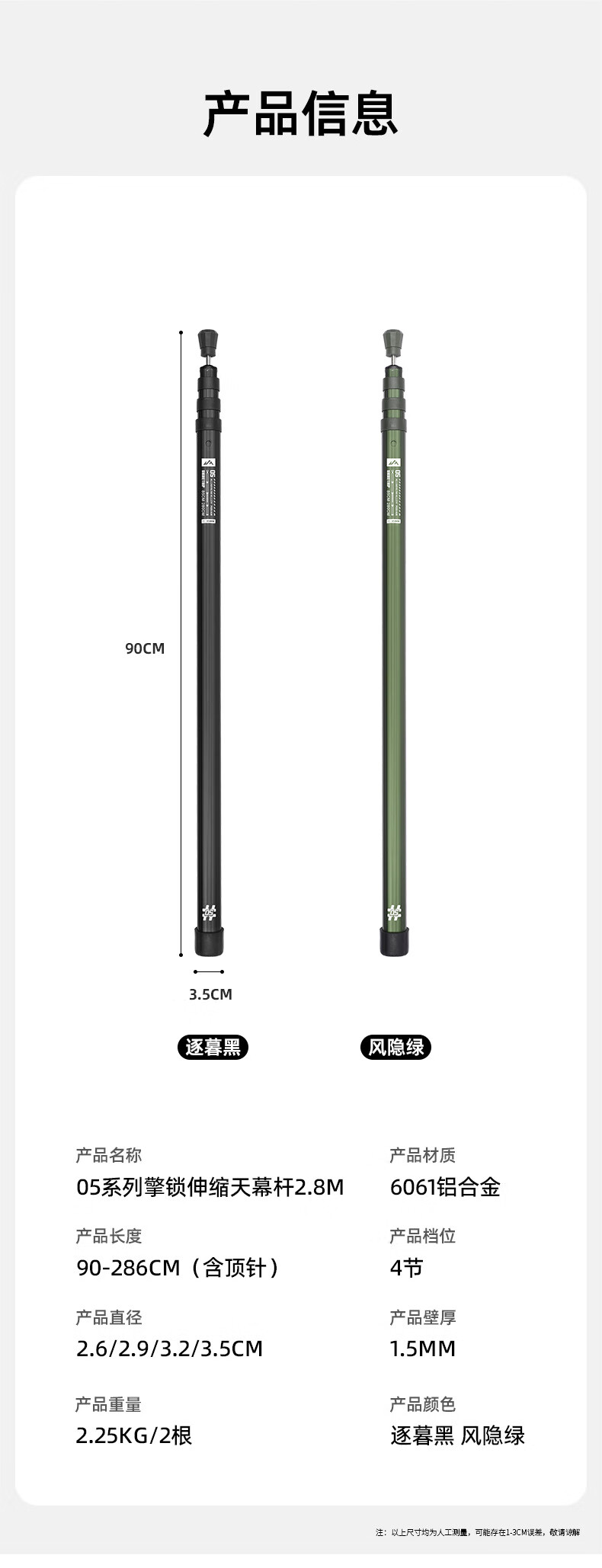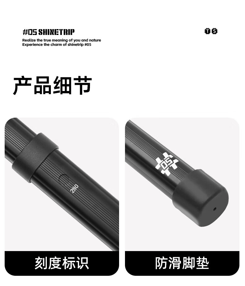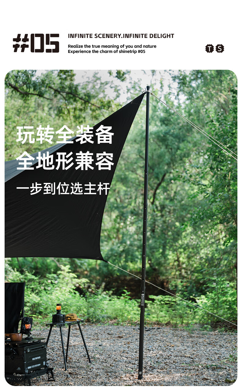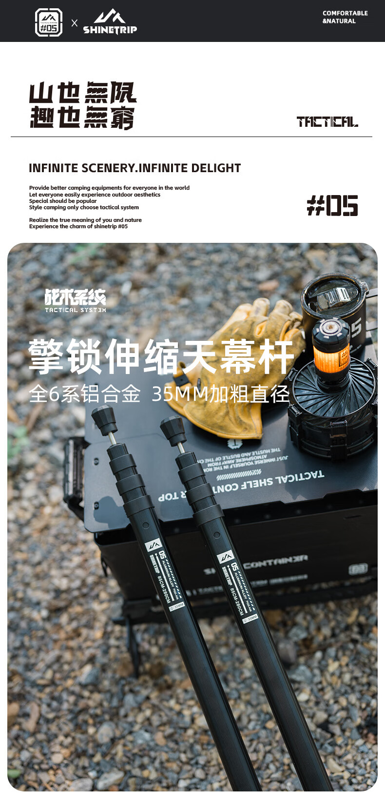 山趣(ShineTrip)户外05系擎锁伸缩天幕杆铝合金2.8米便携帐 天幕杆2.8M-2根-逐暮黑