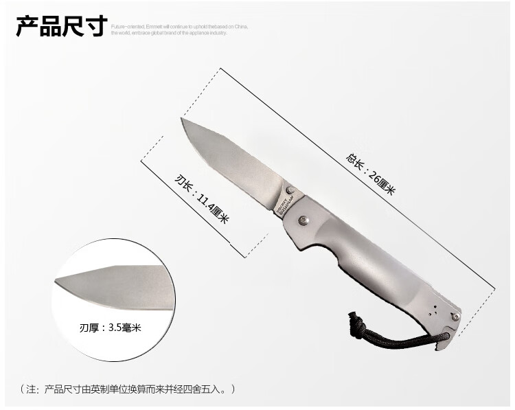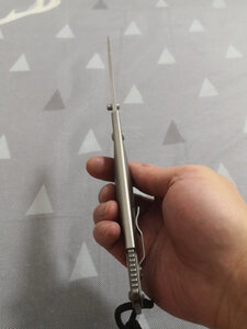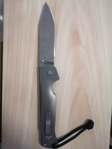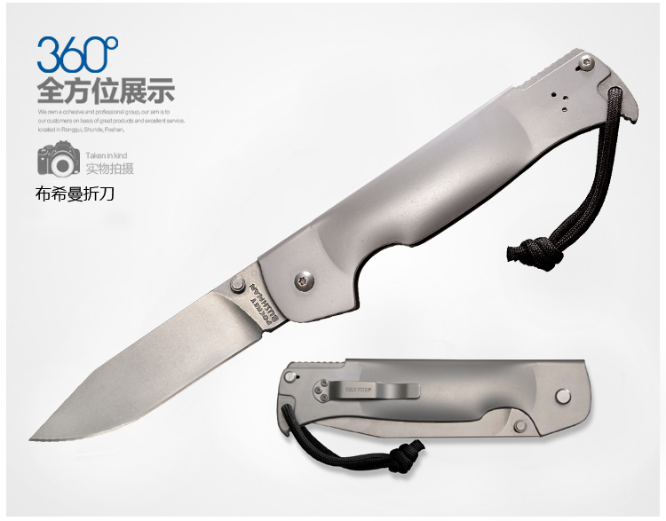 尺寸稍大的一把中型折刀,全金属刀柄,手感较好。重量始终,握感有力有信心。开刀需要一定力度,同样的收刀更加比较需要手劲和手法。锋利度没有试过,应该不是重点。