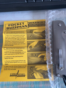 冷钢经典的布希曼拉大栓,全新未拆封,从遥远的哈尔滨过来,不容易,包装严实,内衬外包均裹得严严实实,店铺页面显示的惊喜一并没有,可能是因为318京东户外活动打折力度较大的原因,不过bushman就是三四十美元左右,两百多人民币应该也差不多吧
