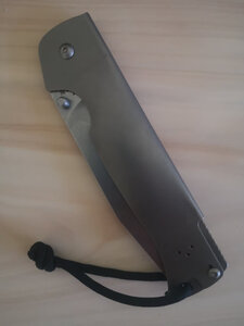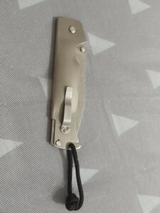 收到折刀后打开看了一下,包装比较简单,但是刀具挺好!表面处理磨砂纹,看起来像喷丸处理,手摸后不留手指纹。长度适中合,重量适合,不重也不轻,比较适合长时间使用。收刀时往后拉动绳子即可收刀,唯一不足的地方就是单手开刀有点困难,适合野外活动。
