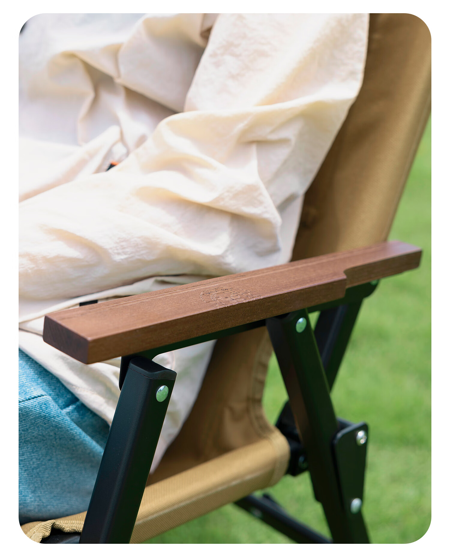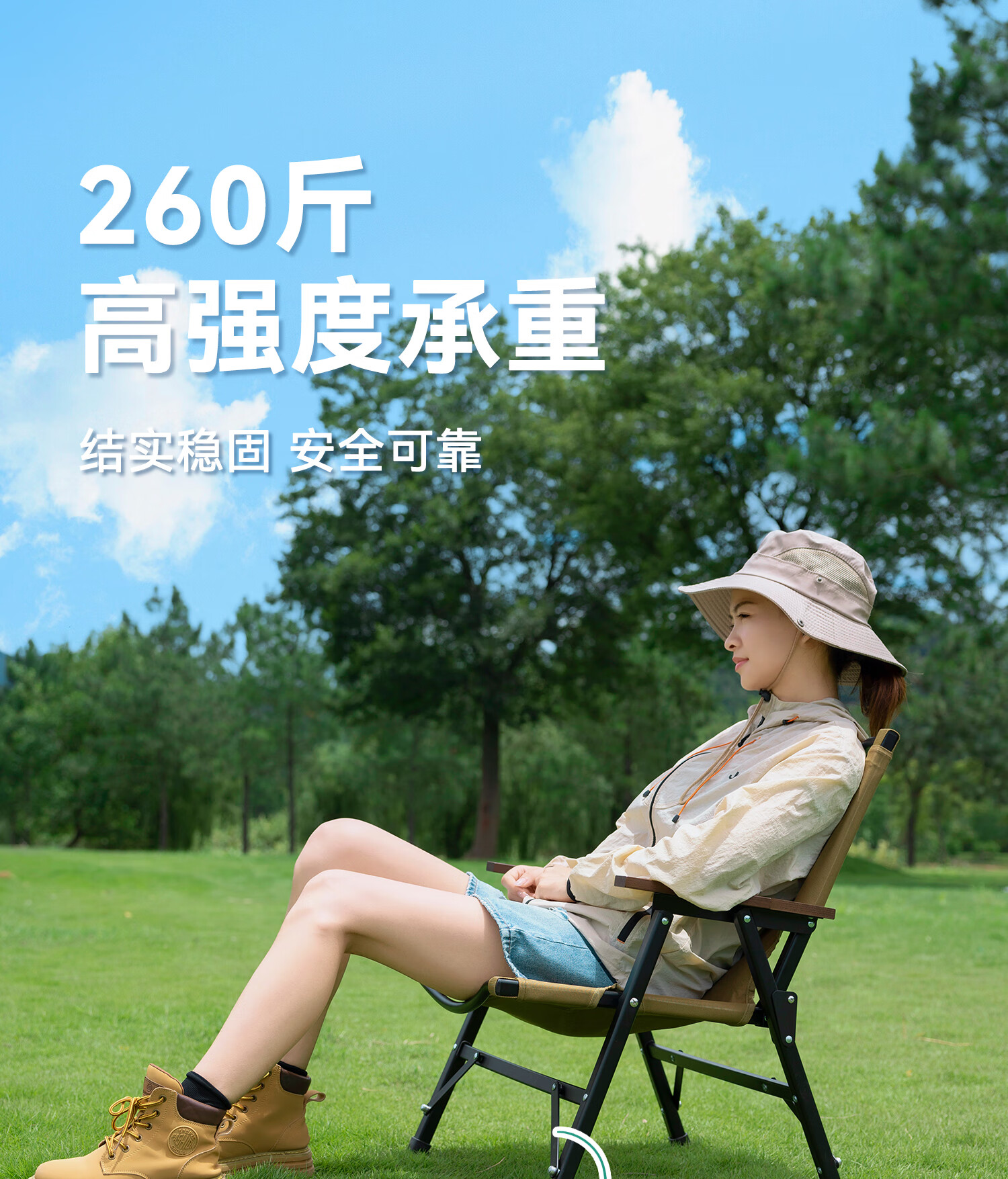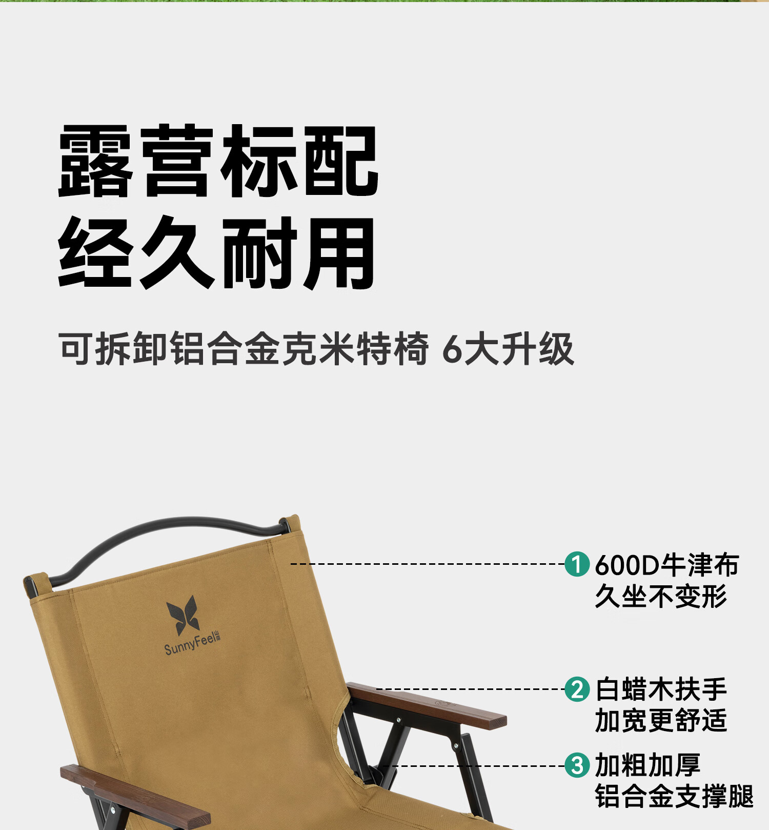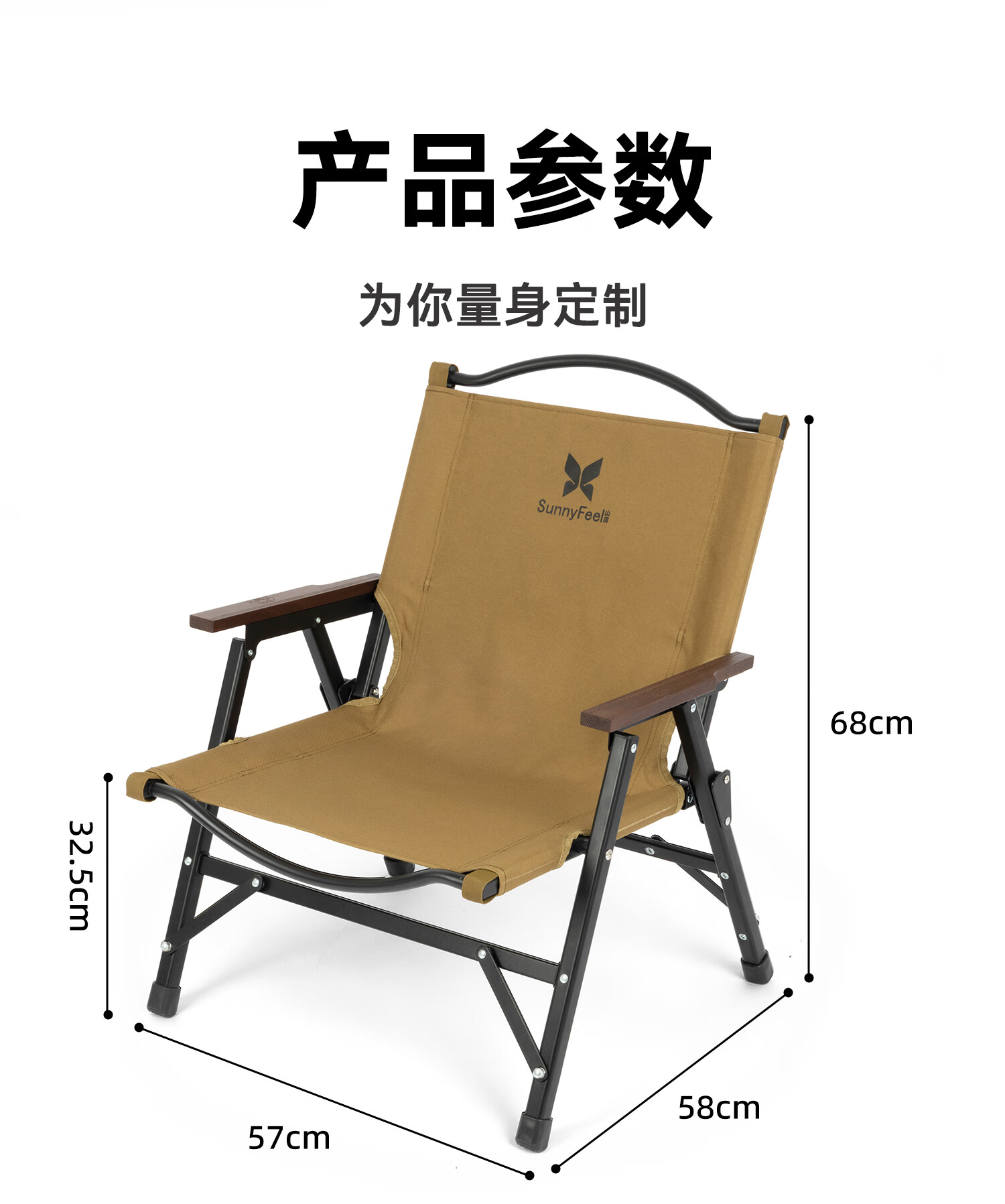 oeny2025款可拆卸克米特椅加固全铝合金可折叠椅户外露营椅网红椅 中号【金椅架+卡其布】升级加固款(实木扶手)